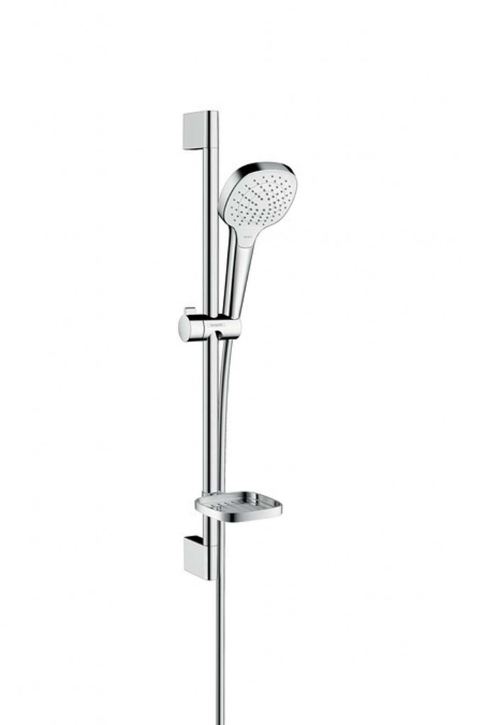 Technické parametry druh proudu: Rain, IntenseRain, Turbo Rain pohodlné přepínání druhů proudu tlačítkem Select velikost sprchové hlavice: 110 mm otočný kloub zabraňuje nepříjemnému kroucení sprchové hadice jezdec s možností nastavení úhlu sklonu o 45° maximální průtok (při 0,3 MPa): 15 l/min chromované držáky na stěnu z umělé hmoty Set obsahuje ruční sprchu Croma Select E Vario (# 26812400) sprchovou hadici Isiflex 1,60 m (# 28276000) nástěnnou tyč Unica’Croma 0,65 m (# 26503000) misku na mýdlo Casetta’E (# 26519000)
