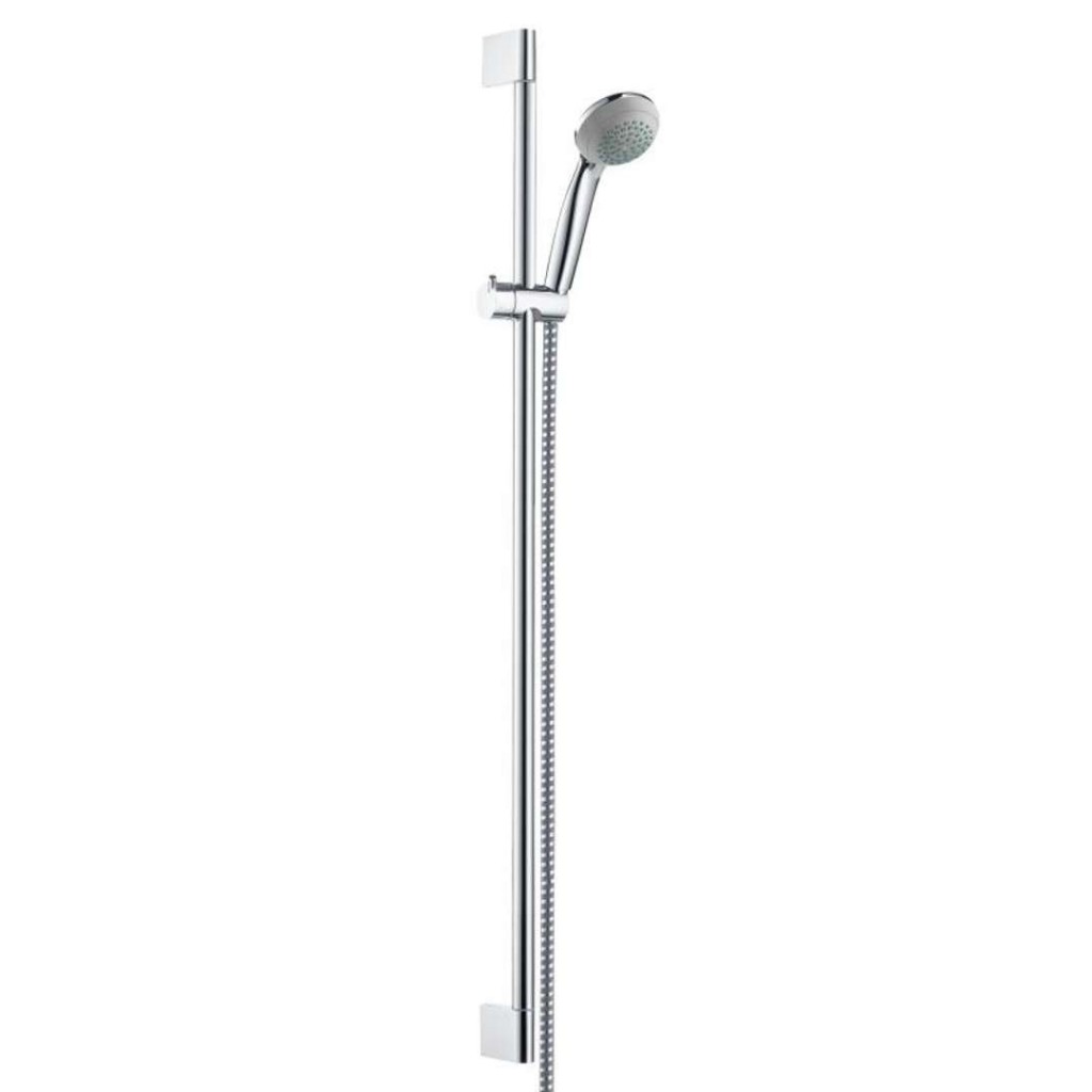 Sprchová souprava Vario obsahuje ruční sprchu Crometta 85 Variojet provedení: chrom velikost sprchové hlavice: 85 mm přepínání druhů proudu otočným kotoučem vodních paprsků druh proudu: normální proud, Vario sprej maximální průtok (při 0,3 MPa): 17 l/min s technologií QuickClean minimální průtokový tlak: 1 bar proplachovatelný filtr nečistot spojovací závit G ½ vhodné pro průtokový ohřívač nástěnnou tyč Unica’Crometta se sprchovou hadicí Metaflex typ sprchové nástěnné tyče: chromovaná mosazná trubka šířka tyče: 22 mm celková délka tyče: 959 mm plně chromovaný sprchový jezdec, s aretací nastavení úhlu sklonu jezdce do dvou poloh tiché nastavení úhlu sklonu chromované držáky na stěnu včetně sprchové hadice Metaflex 1600 mm s ochranou proti zakroucení hadice