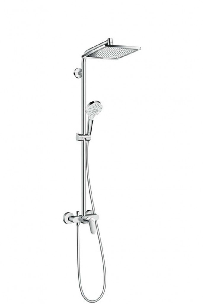 Sprchový set Crometta E Showerpipe 240, 1jet horní sprcha, ruční sprcha, páková sprchová baterie, sprchová hadice, jezdec horní sprcha Crometta E 240, rozměry: 240 x 240 mm sprchové rameno 350 mm kulový kloub: nastavitelný úhel horní sprchy druh proudu: Rain jezdec s možností nastavení úhlu sklonu o 45° držák ruční sprchy s nastavitelnou výškou předem nastavitelné omezení teplé vody maximální průtok při 0,3 MPa: 13 l/min průtok při proudu Rain (při 0,3 MPa): 15 l/min provozní tlak vody: 1,8 bar / max. 10 bar způsob montáže: instalace na stěnu rozměr přívodů DN15 závit přívodů G ½ rozteč středů 150 mm ± 12 mm keramická kartuše