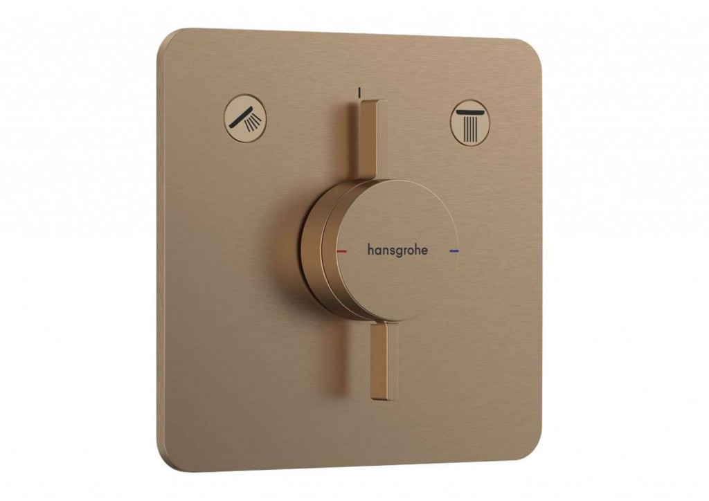 Podomítková baterie DuoTurn Q, pro 2 spotřebiče provedení kartáčovaný bronz krycí rozeta 155 x 155 x 7 mm možnost nastavení rozety v rozsahu +/- 3° kohoutkové ovládání pro 2 spotřebiče dodáváno s tlačítky: Silný déšť/Slabý déšť/Ruční sprcha/Vodopád/Vana maximální průtokové množství: 31 l/min (při 3 barech) průtok horním výstupem: 29,5 l/min průtok dolním výstupem: 29,5 l/min keramická kartuše Water Flow Control ovládání průtoku vody lze regulovat až o 30 % bez podomítkového tělesa snadná instalace díky předmontovanému funkčnímu bloku Instalace na montážní podomítkové těleso, které je třeba objednat samostatně.