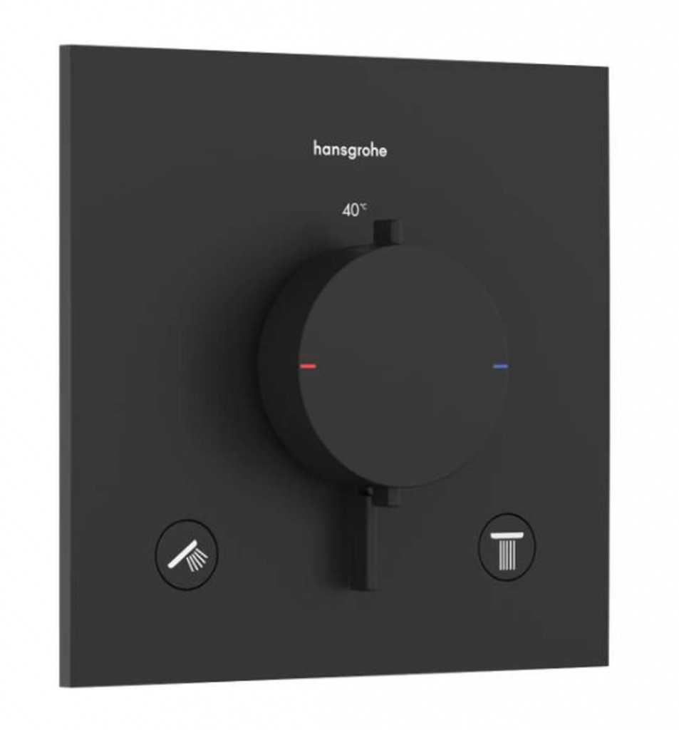Ecostat Comfort E Termostat pod omítku pro 2 spotřebiče barva matná černá rozměr 155 x 155 mm pro 2 spotřebiče snadná instalace díky předmontovanému funkčnímu bloku termostatická kartuše průtok horním výtokem: 25,7 l/min průtokové množství dolním výtokem: 25,7 l/min SafetyStop: Ochrana proti opaření bezpečnostní pojistka při 40 °C nastavitelné omezení teploty a průtoku možnost termické dezinfekce zpětný ventil termostat je dodáván s tlačítky pro Rain small, Rain large, ruční sprchu, Waterfall, vanový výtok Water flow control: Množství vody lze přesně nastavit ovládacím kolečkem na ovladači klapky jsou vždy ve stejné výšce bez ohledu na montážní hloubku základního tělesa podomítková montáž na základní těleso iBox universal 2 (01500180) rozeta může být vyrovnána v rozsahu ± 3° Základní podomítkové instalační těleso je nutné zakoupit zvlášť.