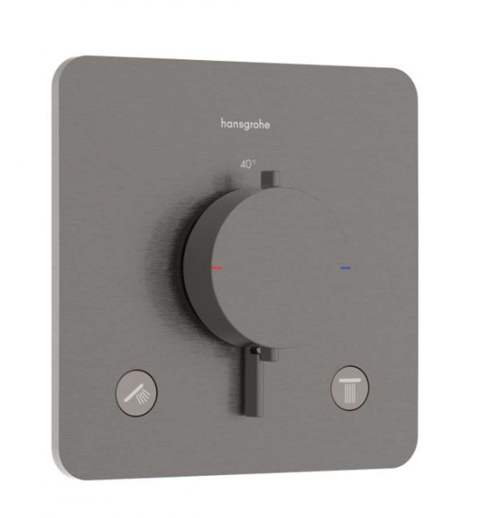 Ecostat Comfort Q Termostat pod omítku pro 2 spotřebiče barva kartáčovaný černý chrom rozměr 155 x 155 mm pro 2 spotřebiče podomítková montáž na základní těleso snadná instalace díky předmontovanému funkčnímu bloku termostatická kartuše slouží vypínání/ovládání průtoku vody a přepínání výstupů nastavitelné omezení teploty a průtoku průtok horním výtokem: 25,7 l/min průtokové množství dolním výtokem: 25,7 l/min SafetyStop: Ochrana proti opaření je velkým bezpečnostním plusem zejména pro děti nebo osoby s omezenou pohyblivostí bezpečnostní pojistka při 40 °C možnost termické dezinfekce zpětný ventil termostat je dodáván s tlačítky pro Rain small, Rain large, ruční sprcha, Waterfall, vanový výtok Water flow control: Množství vody lze přesně nastavit ovládacím kolečkem na ovladači klapky jsou vždy ve stejné výšce bez ohledu na montážní hloubku základního tělesa typ připojení: základní těleso iBox universal 2 (01500180) Základní podomítkové instalační těleso je nutné zakoupit zvlášť.