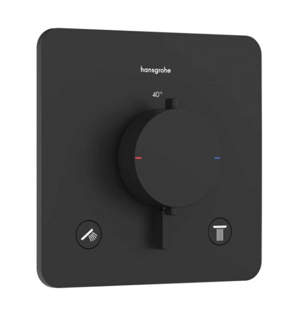 Ecostat Comfort Q Termostat pod omítku pro 2 spotřebiče barva matná černá rozměr 155 x 155 mm pro 2 spotřebiče podomítková montáž na základní těleso snadná instalace díky předmontovanému funkčnímu bloku termostatická kartuše slouží vypínání/ovládání průtoku vody a přepínání výstupů nastavitelné omezení teploty a průtoku průtok horním výtokem: 25,7 l/min průtokové množství dolním výtokem: 25,7 l/min SafetyStop: Ochrana proti opaření je velkým bezpečnostním plusem zejména pro děti nebo osoby s omezenou pohyblivostí bezpečnostní pojistka při 40 °C možnost termické dezinfekce zpětný ventil termostat je dodáván s tlačítky pro Rain small, Rain large, ruční sprcha, Waterfall, vanový výtok Water flow control: Množství vody lze přesně nastavit ovládacím kolečkem na ovladači klapky jsou vždy ve stejné výšce bez ohledu na montážní hloubku základního tělesa typ připojení: základní těleso iBox universal 2 (01500180) Základní podomítkové instalační těleso je nutné zakoupit zvlášť.