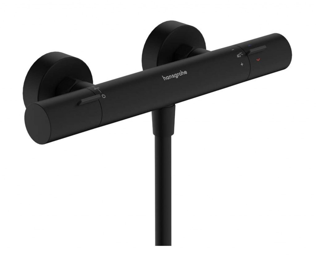 Sprchový termostat na stěnu barva: matná černá materiál ovládání: kov ovládání teploty a průtoku vody bezpečnostní zastavení při 40 °C nastavitelné omezení teploty tlačítko Ecostop+ omezující spotřebu vody na 6 l/min termostatická kartuše maximální průtok při 3 barech: 17 l/min minimální provozní tlak: 1 bar maximální provozní tlak: 10 barů zpětný ventil s tlumičem hluku středová vzdálenost: 150 ± 12 mm snadná montáž - dodávané etážky se přišroubují k přívodům vody typ připojení: S-přípojky, G 1⁄2 filtr na nečistoty je součástí balení