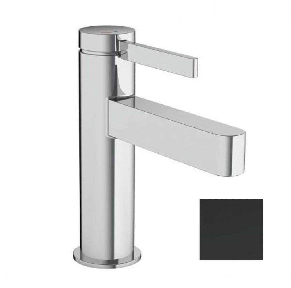 Finoris Páková umyvadlová baterie 100 CoolStart s odtokovou soupravou Push-Open barva: matná černá ComfortZone: 92 mm délka výtoku: 126 mm výška baterie: 164-199 mm páková rukojeť laminární proud EcoSmart: max. průtok při 3 barech: 5 l/min keramická kartuše nastavitelné omezení teploty vhodné pro průtokové ohřívače vody odtoková souprava Push-Open G 1 1⁄4 materiál odtokové soupravy: kov typ připojení: připojovací hadice G 3⁄8 rozměr přívodů: DN15 CoolStart: studená voda v základní poloze rukojeti Ilustrační foto