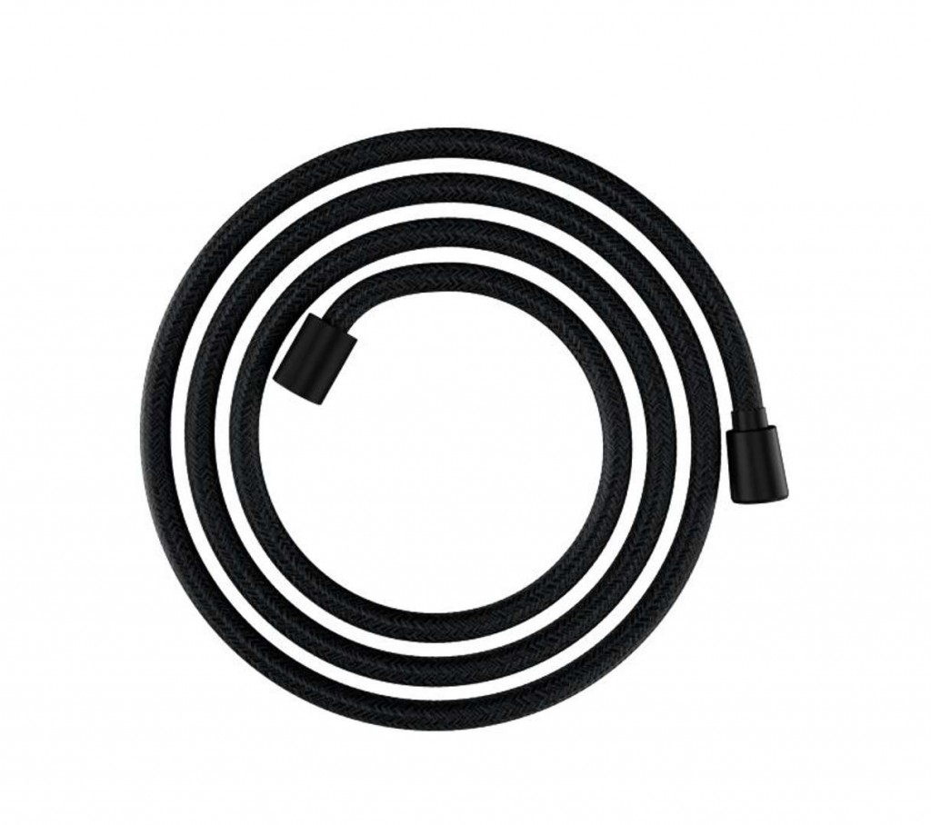 Textilní sprchová hadice Designflex provedení matná černá délka 2000 mm povrch s textilním opletením vodotěsný a voděodpudivý materiál vlákna z recyklovaných PET lahví možnost mytí v myčce do 60 °C otočná koncovka zabraňující překroucení hadice odolná vůči zlomení připojení G 1/2"
