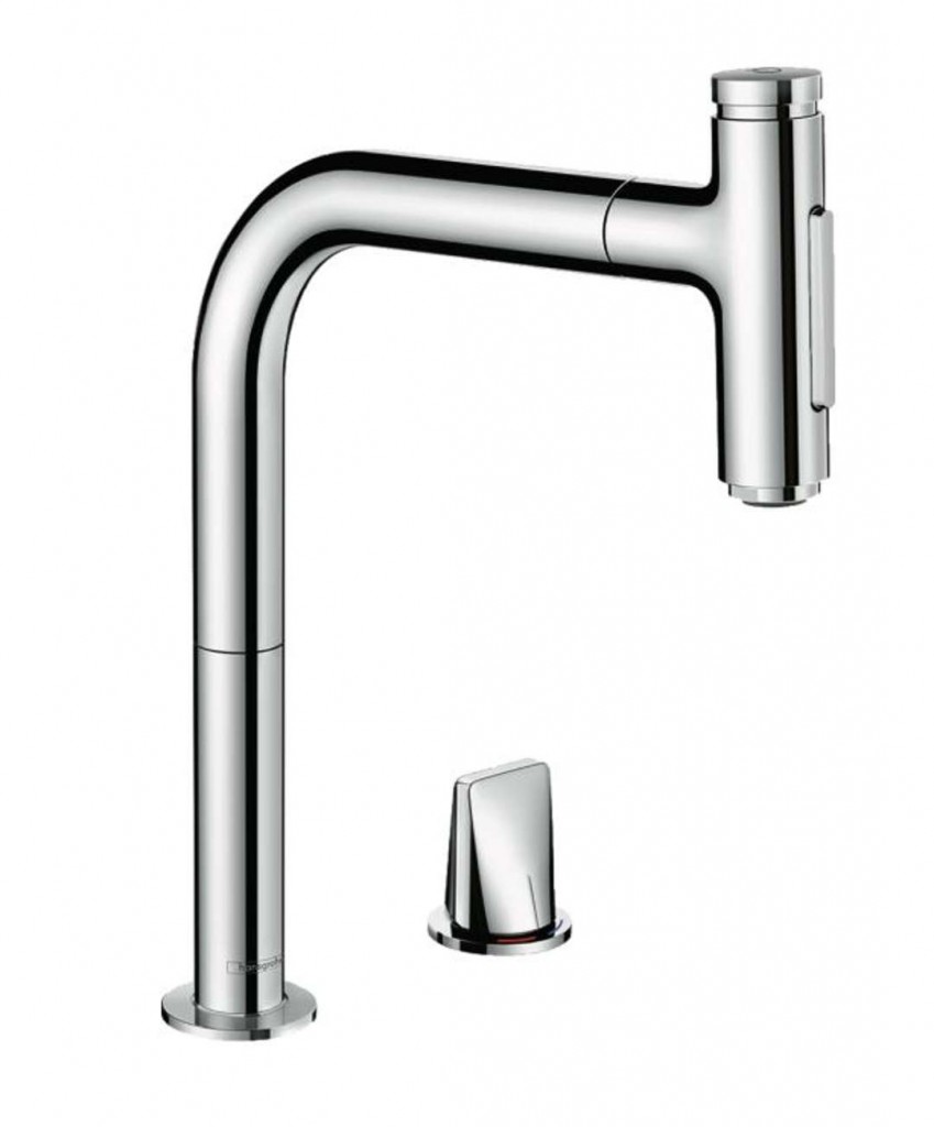 Kuchyňská páková baterie s výsuvným výtokem včetně sBoxu ComfortZone 200 rozsah otáčení 110° / 150° laminární a sprchový proud automatické zpětné nastavení proudu uzavřením baterie magnetický držák sprchy MagFit hadice spršky (výtoku) Quick-Connect průtokové množství 8 l/min keramická kartuše přívodní hadice G 3⁄8 vestavěný zpětný ventil vhodné pro průtokový ohřívač sBOX umožňuje snadné uložení hadice v dřezové skříňce hadice se vytahuje až 76 cm a zaručuje příjemnou práci a volnost pohybu v okolí dřezu má tichý chod a chrání hadici před poškozením flexibilní možnosti instalace boxu (svislá i zešikmená) závaží usnadňuje hladký pojezd vytahovací spršky má plochý tvar, méně než 30 mm pro případnou instalaci ve stísněných podmínkách