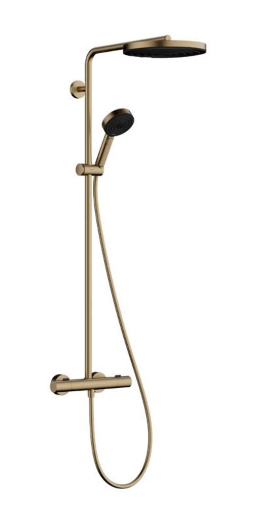Nástěnný sprchový set Pulsify S Puro Showerpipe 260 obsahuje termostat Ecostat Fine barva: kartáčovaný bronz SafetyStop - bezpečnostní zastavení při 40 °C předem nastavitelné omezení teplé vody výtoky ovládané otočným ovladačem výstupy nemohou být ovládány současně vhodné pro průtokové ohřívače vody způsob montáže: instalace na stěnu rozměr přívodů: DN15 spojovací závit G 1⁄2 středová vzdálenost: 150 ± 12 mm hlavovou sprchu Pulsify 260 barva: kartáčovaný bronz, povrch rozstřikovacího kotouče: grafitová průměr: 260 mm 1 sprchový proud - PowderRain průtokové množství PowderRain při 3 barech: 11,2 l/min XXL Performance - velká sprcha, ohromné potěšení otočné rameno sprchy kulový kloub: nastavitelný úhel horní sprchy FastDrain - zbytková voda po osprchování rychle odteče při náklonu od 10° QuickClean - vodní kámen lze snadno odstranit otřením silikonových trysek sprchové hlavice délka horní ramene: 460 mm ruční sprchu Pulsify Select S průměr: 105 mm povrch rozstřikovacího kotouče: grafitová Select tlačítko k přepínání proudů 3 sprchové proudy - PowderRain, IntenseRain, masážní proud QuickClean - vodní kámen lze snadno odstranit otřením silikonových trysek sprchové hlavice průtok při 3 barech: 10,5 l/min sprchovou hadici Isiflex a nástěnný systém s držákem délka sprchové hadice: 1600 mm výškově nastavitelný jezdec s aretací jezdce tlačítkem jezdec otočný na trubce pro obsluhu zleva nebo zprava průměr sprchové tyče: 22 mm maximální průtokové množství pro Showerpipe při tlaku 3 bary: 11,2 l/min tyč lze zkrátit na výšku