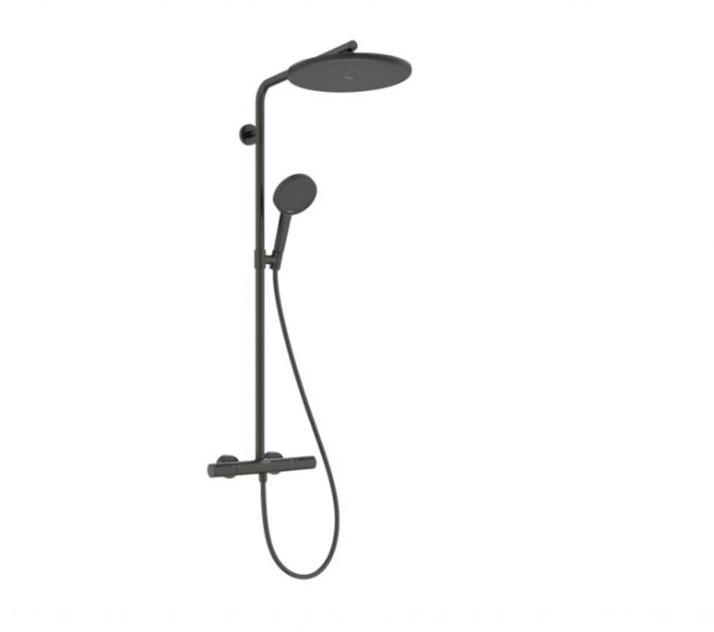 Raindance Alive S Puro Showerpipe 300 1jet s termostatem Ecostat Element obsahuje: Baterie s termostatem Ecostat Element barva: kartáčovaný černý chrom termostat umožňující ovládání teploty při sprchování nebo koupání nepřetržitě monitoruje teplotu vody rychle reaguje na změny tlaku a udržuje stálou teplotu pro příjemný požitek z vody za všech okolností bezpečnostní pojistka při 40 °C materiál krytu termostatu, rukojeti a tlačítek Select: kov vhodné pro průtokové ohřívače vody současné používání několika výtoků: 2 spotřebiče SafetyStop: omezení teploty brání vytékání příliš horké vody ze sprchy Water flow control: množství vody lze přesně nastavit ovládacím kolečkem na ovladači termostatu pro úsporu vody Horní sprcha Raindance Alive S 300 1jet velikost sprchové hlavice horní sprchy: 300 mm druh proudu: RainAir, PowderRain možné změnit druh proudu před i po montáži, RainAir (přednastaveno), změnu na PowderRain lze zvolit při montáži nebo snadno změnit kdykoli později průtokové množství PowderRain při 3 barech: 11 l/min průtok proudu RainAir při tlaku 3 bary: 10,5 l/min povrch disku vodních paprsků: grafitová kulový kloub: nastavitelný úhel horní sprchy designová krytka zakrývá trysky, plochý, minimalistický design designovou krytku lze snadno a bez použití nářadí sejmout a vyčistit Adjustable Shower Head: kulový kloub, nastavitelný úhel horní sprchy QuickClean: usazeniny vodního kamene a nečistoty stačí setřít ze silikonové trysky XXL Performance: ruční sprchy a talířové horní sprchy s průměry mezi 100 a 600 mm DropGuard: snižuje kapání po zastavení sprchy na pouhých několik sekund AirPower: obohacení vody o množství vzduchu Ruční sprcha 3 druhy proudu: RainAir, PowderRain, Massage průtok ruční sprchy při 3 barech: 10,5 l/min designový povrch krytky: grafit designovou krytku lze snadno a bez použití nářadí sejmout a vyčistit Select: při sprchování lze jednoduchým stiskem tlačítka změnit druh proudu nebo přepnout z horní na ruční sprchu QuickClean: usazeniny vodního kamene a nečistoty stačí setřít ze silikonové trysky AirPower: obohacení vody o množství vzduchu Textilní sprchová hadice Designflex voděodolný a vodoodpudivý materiál unikátní design s různobarevnými splétanými vlákny s vnitřním zabezpečením proti zpětnému toku Sprchová tyč výškově nastavitelný, snadno posuvný jezdec připojovací závit G 1⁄2 rozteč: 150 ± 12 mm Ilustrační foto