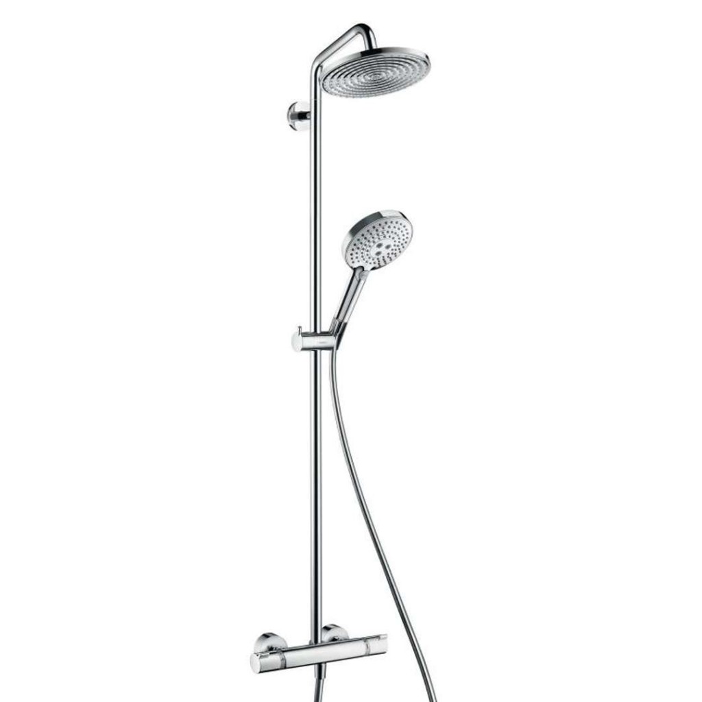 Sprchová souprava obsahuje termostat Ecostat Comfort bezpečnostní pojistka při 40°C předem nastavitelné omezení teplé vody ovládání spotřebičů otočením rukojeti způsob montáže: instalace na stěnu rozměr připojení DN15 spojovací závit G ½ rozteč středů 150 mm ± 12 mm vhodné pro průtokový ohřívač s výkonem od 18 kW horní sprchu Raindance S 240 Air s ramenem velikost sprchové hlavice: 240 mm nastavitelný úhel horní sprchy druh proudu: RainAir průtok při proudu RainAir (při 0,3 MPa): 9,5 l/min délka ramena sprchy: 430 mm otočné sprchové rameno sprchovou hlavici Raindance Select S 120 průměr sprchové hlavice: 120 mm pohodlné přepínání druhů proudu tlačítkem Select druh proudu: Rain, RainAir, WhirlAir maximální průtok (při 0,3 MPa): 9 l/min s vnitřním vedením vody proplachovatelný filtr nečistot spojovací závit G ½ vhodné pro průtokový ohřívač držák ruční sprchy a sprchovou hadici Isiflex držák ruční sprchy s nastavitelnou výškou délka hadice: 1600 mm otočný kloub zabraňuje nepříjemnému kroucení sprchové hadice odolná proti zlomení