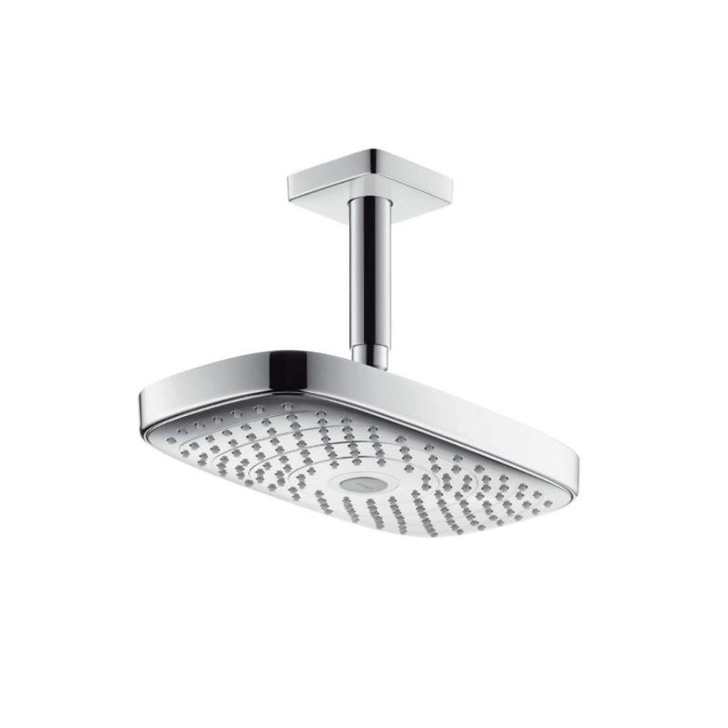 Horní sprcha Raindance Select E velikost sprchového modulu: 300 x 160 mm kulový kloub: nastavitelný úhel horní sprchy druh proudu: Rain, RainAir průtokové množství proudu Rain (při 0,3 MPa): 9 l/min průtokové množství proudu RainAir (při 0,3 MPa): 9 l/min přepínání tlačítkem Select na horní sprše povrch sprchového dílu ve dvou variantách: chrom nebo bílá materiál sprchového dílu: kov při čištění lze pohledový díl horní sprchy sejmout kovový přívod od stropu délka přívodu od stropu: 100 mm montáž: strop závit přívodů G ½ rozměr přívodů: DN15
