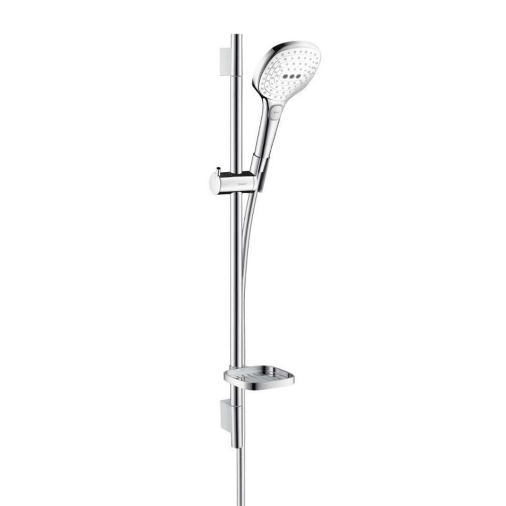 Technické parametry druh proudu: Rain, RainAir, masážní proud pohodlné přepínání druhů proudu tlačítkem Select velikost sprchové hlavice: 120 mm otočný kloub zabraňuje nepříjemnému kroucení sprchové hadice úhel sklonu měnitelný o 90°, jezdec je vychýlitelný vlevo a vpravo a také nahoru a dolů maximální průtok (při 0,3 MPa): 9 l/min chromované držáky na stěnu z umělé hmoty Set obsahuje sprchovou hadici Isiflex 1,60 m EcoSmart 9 l/min (# 28271000) ruční sprchu Raindance Select E 120 3jet EcoSmart 9 l/min (# 26521400) nástěnnou tyč Unica’S Puro 0,65 m (# 28632000) misku na mýdlo Casetta’E (# 26519000)
