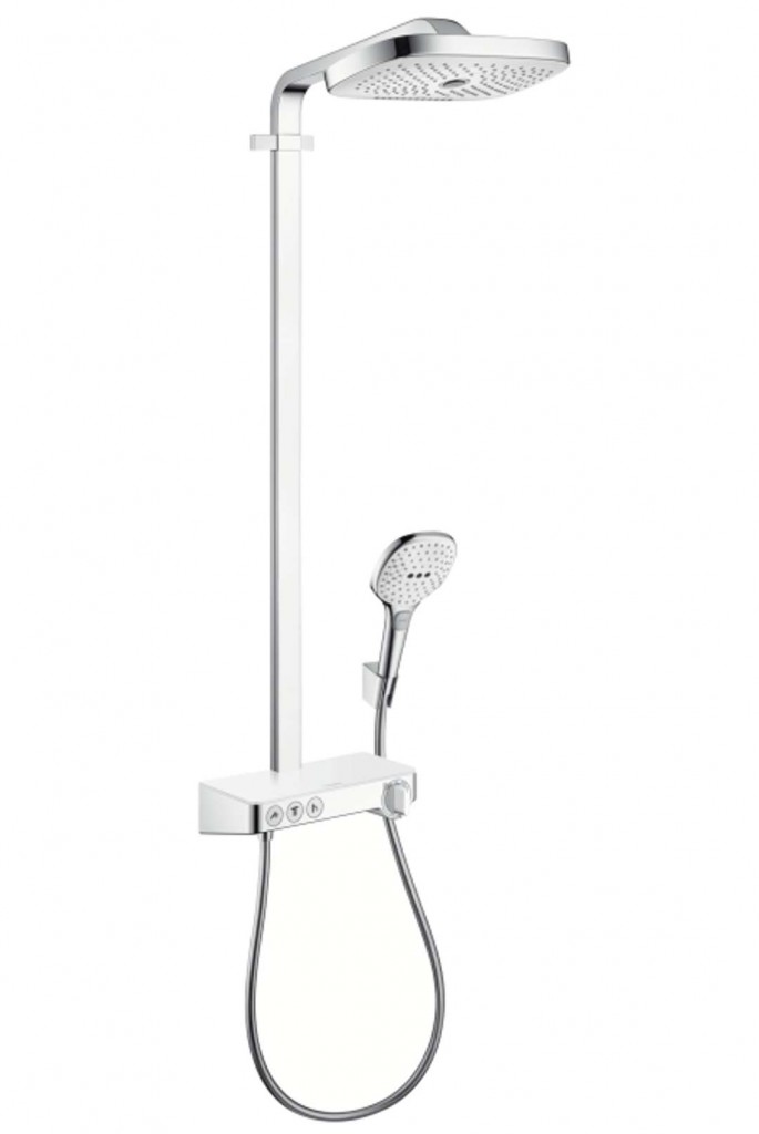 Technické parametry horní sprcha Raindance Select E 300 3jet velikost sprchové hlavice: 300 x 190 mm polička z bezpečnostního skla, povrchová úprava: bílá druh proudu: RainAir, Rain, RainStream pohodlné přepínání druhů proudu tlačítkem Select průtok při proudu RainAir (při 0,3 MPa): 16 l/min průtok při proudu Rain (při 0,3 MPa): 16 l/min průtok při proudu RainStream (při 0,3 MPa): 19 l/min povrch sprchového dílu ve dvou variantách: chrom nebo bílá délka ramena sprchy: 380 mm termostat ShowerTablet Select 300 izolované vedení vody bezpečnostní pojistka při 40°C předem nastavitelné omezení teplé vody pohodlné přepínání tlačítkem Select způsob montáže: instalace na stěnu rozměr připojení DN15 spojovací závit G ½ rozteč středů 150 mm ± 12 mm při montáži na stávající připojení G ½ je zapotřebí adaptér (02026000) Set obsahuje ruční sprchu Raindance Select E 120 3jet (# 26520400) držák sprchy Porter’S (# 28331000) sprchovou hadici Isiflex 1,60 m (# 28276000) horní sprchu Raindance Select E 300 3jet termostat Ecostat Select