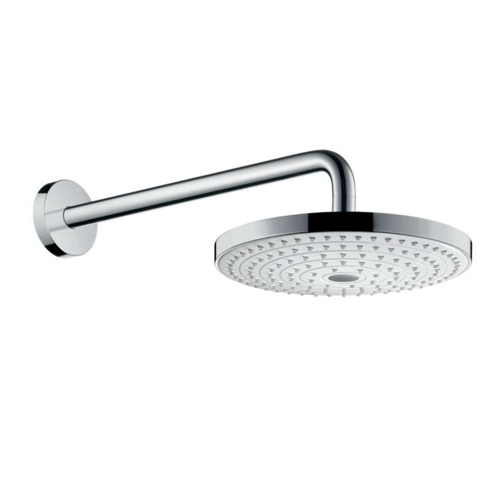 Technické parametry velikost sprchové hlavice: 240 mm délka ramena sprchy: 390 mm druh proudu: RainAir, Rain průtokové množství proudu Rain (při 0,3 MPa): 17 l/min průtokové množství proudu RainAir (při 0,3 MPa): 17 l/min nastavení druhu proudu: přepínání tlačítkem Select na horní sprše povrch sprchového dílu ve dvou variantách: chrom nebo bílá materiál sprchového dílu: kov při čištění lze sprchový díl odejmout montáž: instalace na stěnu spojovací závit G ½