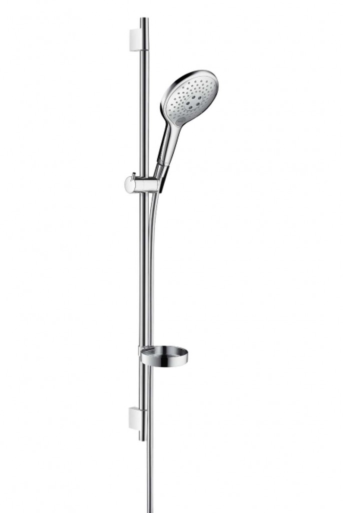 Technické parametry druh proudu: RainAir, CaresseAir, Mix pohodlné přepínání druhů proudu tlačítkem Select velikost sprchové hlavice: 150 mm otočný kloub zabraňuje nepříjemnému kroucení sprchové hadice úhel sklonu měnitelný o 90°, jezdec je vychýlitelný vlevo a vpravo a také nahoru a dolů maximální průtok (při 0,3 MPa): 16 l/min chromované držáky na stěnu z umělé hmoty Set obsahuje ruční sprchu Raindance Select S 150 3jet (# 28587000) nástěnnou tyč Unica’S Puro 0,90 m (# 28631000) sprchovou hadici Isiflex 1,60 m (# 28276000) misku na mýdlo Casetta’S Puro (# 28679000)