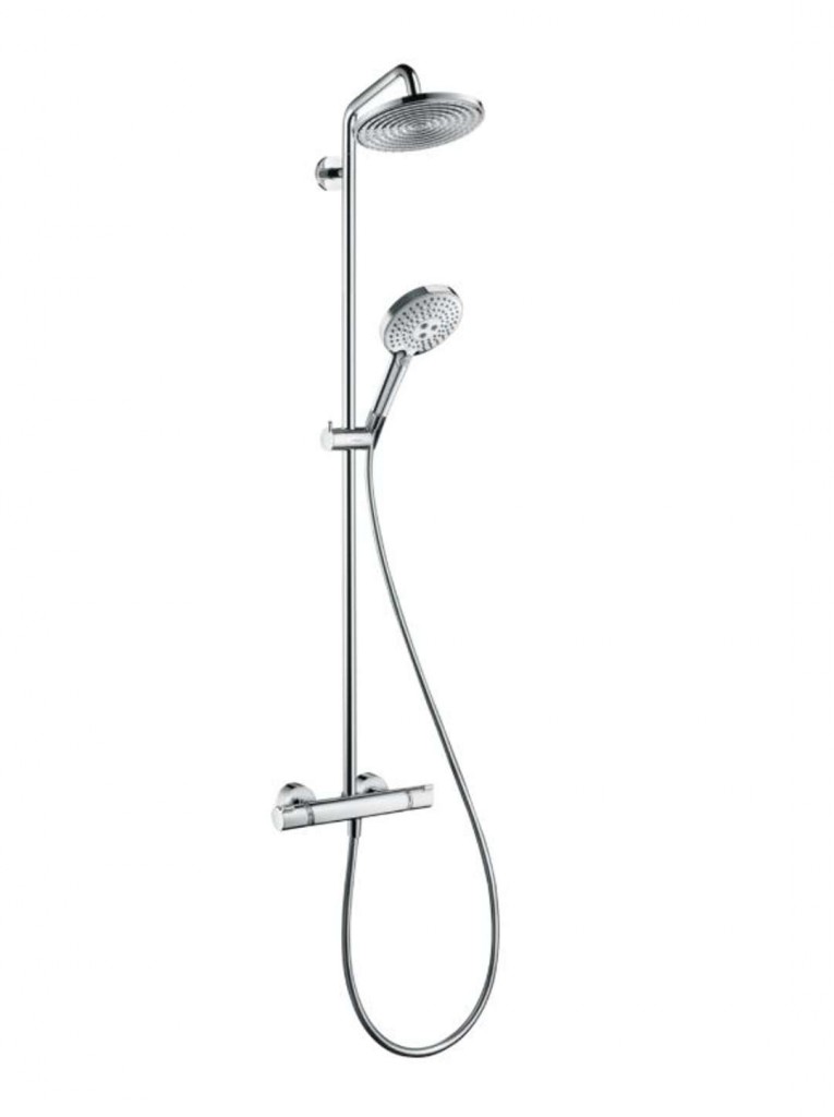 Sprchová souprava obsahuje termostat Ecostat Comfort bezpečnostní pojistka při 40°C předem nastavitelné omezení teplé vody ovládání spotřebičů otočením rukojeti způsob montáže: instalace na stěnu rozměr připojení DN15 spojovací závit G ½ rozteč středů 150 mm ± 12 mm vhodné pro průtokový ohřívač s výkonem od 18 kW horní sprchu Raindance S 240 Air s ramenem velikost sprchové hlavice: 240 mm nastavitelný úhel horní sprchy druh proudu: RainAir maximální průtok při 0,3 MPa: 16 l/min provozní tlak vody: min. 0,15 MPa/max. 1,0 MPa délka ramena sprchy: 430 mm otočné sprchové rameno sprchovou hlavici Raindance Select S velikost sprchové hlavice: 125 mm pohodlné přepínání druhů proudu tlačítkem Select druh proudu: RainAir, Rain, WhirlAir maximální průtok (při 0,3 MPa): 15 l/min s vnitřním vedením vody proplachovatelný filtr nečistot spojovací závit G ½ vhodné pro průtokový ohřívač držák ruční sprchy a sprchovou hadici Isiflex držák ruční sprchy s nastavitelnou výškou délka hadice: 1600 mm otočný kloub zabraňuje nepříjemnému kroucení sprchové hadice odolná proti zlomení