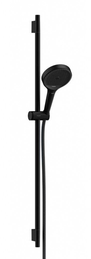 Sprchová soupravy obsahuje: ruční sprchu provedení matná černá/grafit velikost sprchového modulu 130 mm XXL Performance 3 proudy - PowderRain, Intense PowderRain, MonoRain max. průtok 14 l/min (při tlaku 3 bar) volba proudu tlačítkem Select snadná údržba QuickClean sprchovou tyč S Puro délka 1008 mm rozteč uchycení 915 mm průměr tyče 22 mm s posuvným držákem ruční sprchy instalace vrtáním sprchovou hadici Designflex délka 1600 mm otočná koncovka zabraňující zamotání hadice textilní povrchová úprava