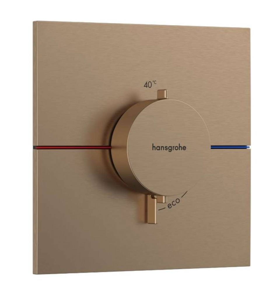 Sprchový termostat pod omítku ShowerSelect Comfort E barva kartáčovaný bronz rozměry 155 x 155 mm podomítková montáž na základní těleso nastavitelné omezení teploty a průtoku termostatická kartuše max. průtok 34,8 l/min průtok horní výstup 32 l/min průtok dolní výstup 32 l/min bezpečnostní pojistka při 40 °C možnost termické dezinfekce Základní podomítkové instalační těleso a uzavírací ventil je nutné zakoupit zvlášť.