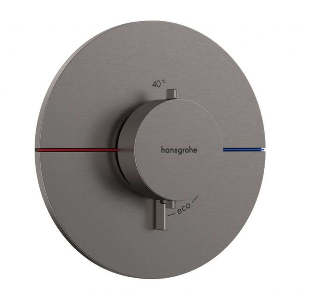 Sprchový termostat pod omítku ShowerSelect Comfort S barva kartáčovaný černý chrom průměr 155 mm podomítková montáž na základní těleso nastavitelné omezení teploty a průtoku termostatická kartuše max. průtok 34,8 l/min bezpečnostní pojistka při 40 °C možnost termické dezinfekce Základní podomítkové instalační těleso a uzavírací ventil je nutné zakoupit zvlášť.