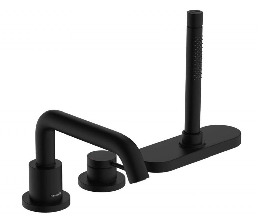 Vanová 3otvorová baterie, bez tělesa barva matná černá délka výtoku 194 mm 3-otvorová instalace pákové ovládání typ proudu Rain, Mono keramická kartuše vytahovací ruční sprcha hadice o délce 145 cm držák hadice sBox max. průtok 20 l/min (3 bary) ochrana proti zpětnému toku připojení G 1/2" Montáž na základní set pro baterie na okraj vany, který není součástí balení.