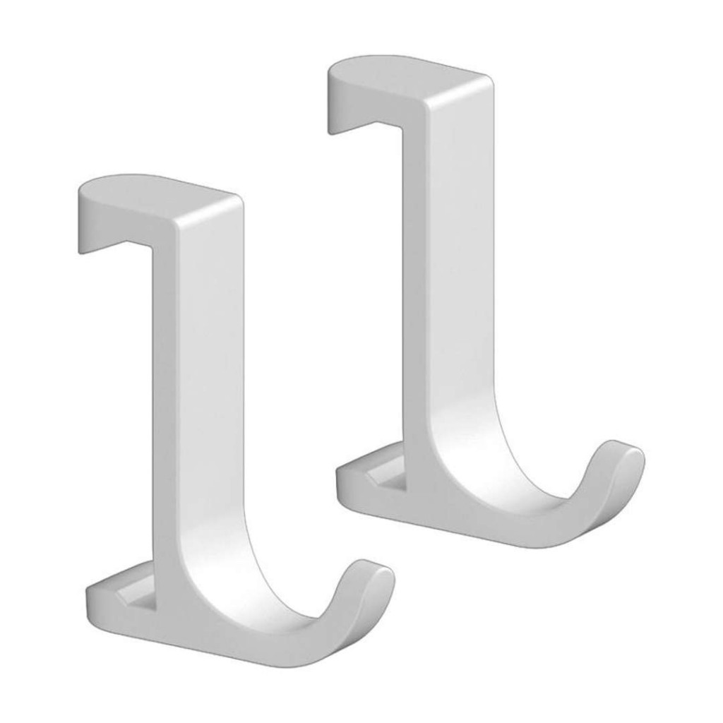 Věšák na ručníky, oblečení a koupelnové houbičky provedení: matná bílá materiál: plast upevnění díky technologii EasyClick snadná údržba, možnost mytí v myčce nádobí v balení 2 ks Háčky se upevňují na nástěnnou tyč, která není součástí dodávky.