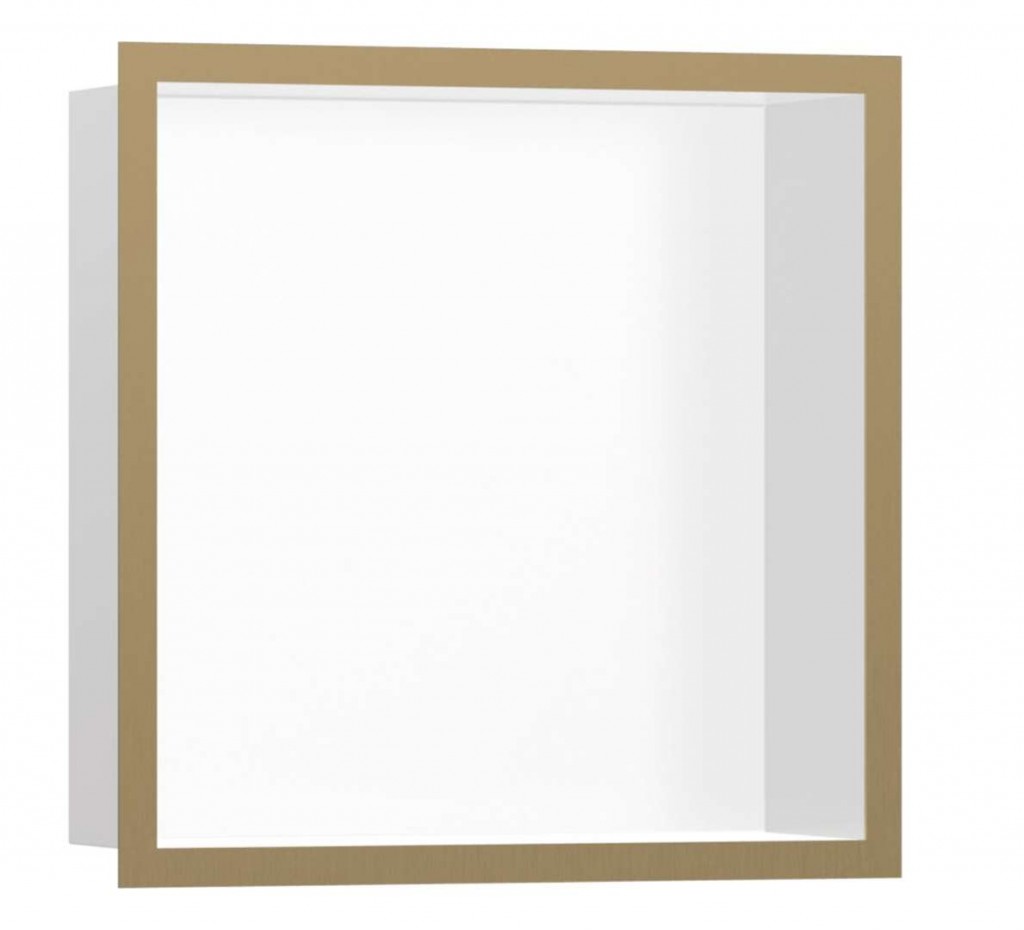 Police s designovým rámem k zabudování do stěny integrované úložné řešení pro koupelny materiál: kvalitní kartáčovaná nerezová ocel s dlouhou životností povrch: práškově lakovaná nerezová ocel barva: matná bílá / kartáčovaný bronz snadné a rychlé čištění a údržba povrchů Water damage protection zabraňuje poškození vodou díky vodotěsné základní sadě a předmontované těsnící textilii rozměr výklenku: 300 x 300 x 100 mm (VxŠxH) rozměry pro instalaci: 313 x 325 x 100 mm (VxŠxH) pro typ stěny: pevná stěna i sádrokartonová konstrukce součástí dodávky je: výklenek s rámem, instalační a těsnící sada