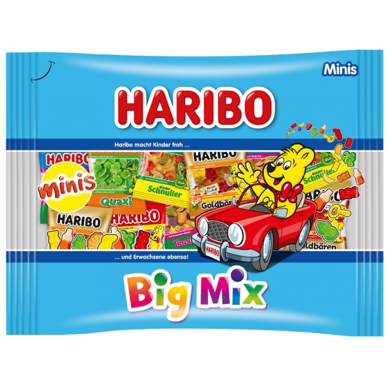 Big Mix 330g (22x15g) Pro milovníky pestrých chutí a tvarů. Najdete zlatou klasiku i šťavnaté kamarády, exotické Tropi Frutti, colové lahvičky, sladké dudlíky a nadýchané žabičky. Praktické mini sáčky se perfektně hodí na cesty nebo dětské oslavy a poskytnou tu správnou porci mlsání. Složení: glukózový sirup, cukr, jedlá želatina, ovocné šťávy z koncentrátů (jablko, malina, citrón, broskev, třešeň, pomeranč, jahoda, banán, ananas), dextróza, kyselina: kyselina citrónová, ovocné a rostlinné koncentráty (světlice barvířská, řasa spirulina, jablko, černý bez, černý rybíz, mrkev, pomeranč, borůvka, kiwi, citron, aronie, hroznové víno, mango, mučenka), aroma, sirup z karamelizovaného cukru, extrakt z černého bezu, leštící látky: včelí vosk bílý a žlutý, karnaubský vosk. Může obsahovat stopy mléka a pšenice.