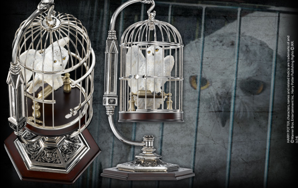 Dokonalý doplněk do sbírky fanoušků Harryho Pottera. Replika klece s Hedvikou je vyrobena z mosazi a slitiny zinku. Podstavec je vyrobený ze dřeva. Výška i s podstavcem cca 25 cm.
