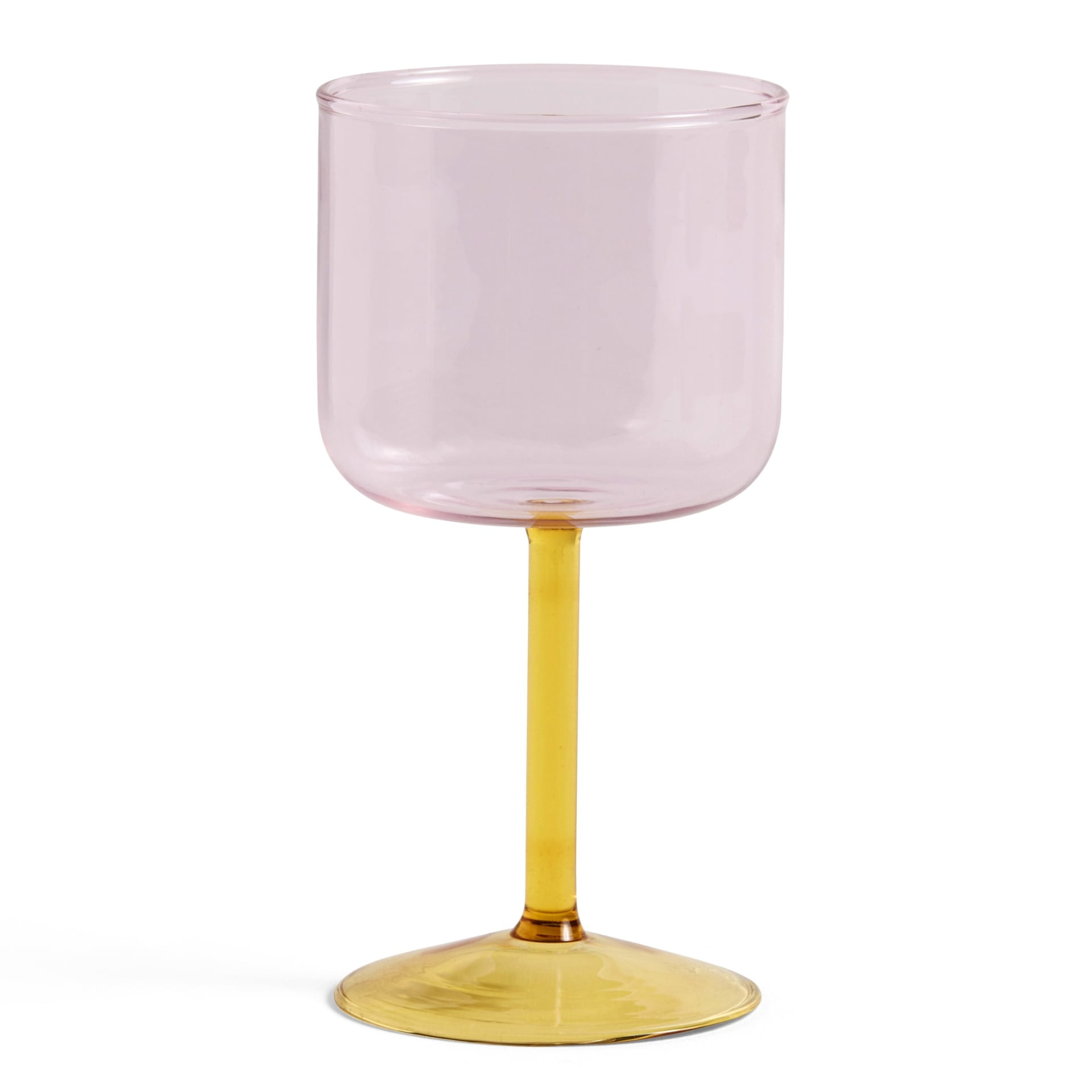 Sklenice v kombinaci růžové a žluté jsou součástí kolekce designových sklenic vyrobených z tónovaného čirého borosilikátového skla. Jejich elegantní a minimalistický design přináší do stolování jemný barevný akcent a hodí se nejen na víno, ale i na vodu, džus nebo jiné nápoje.