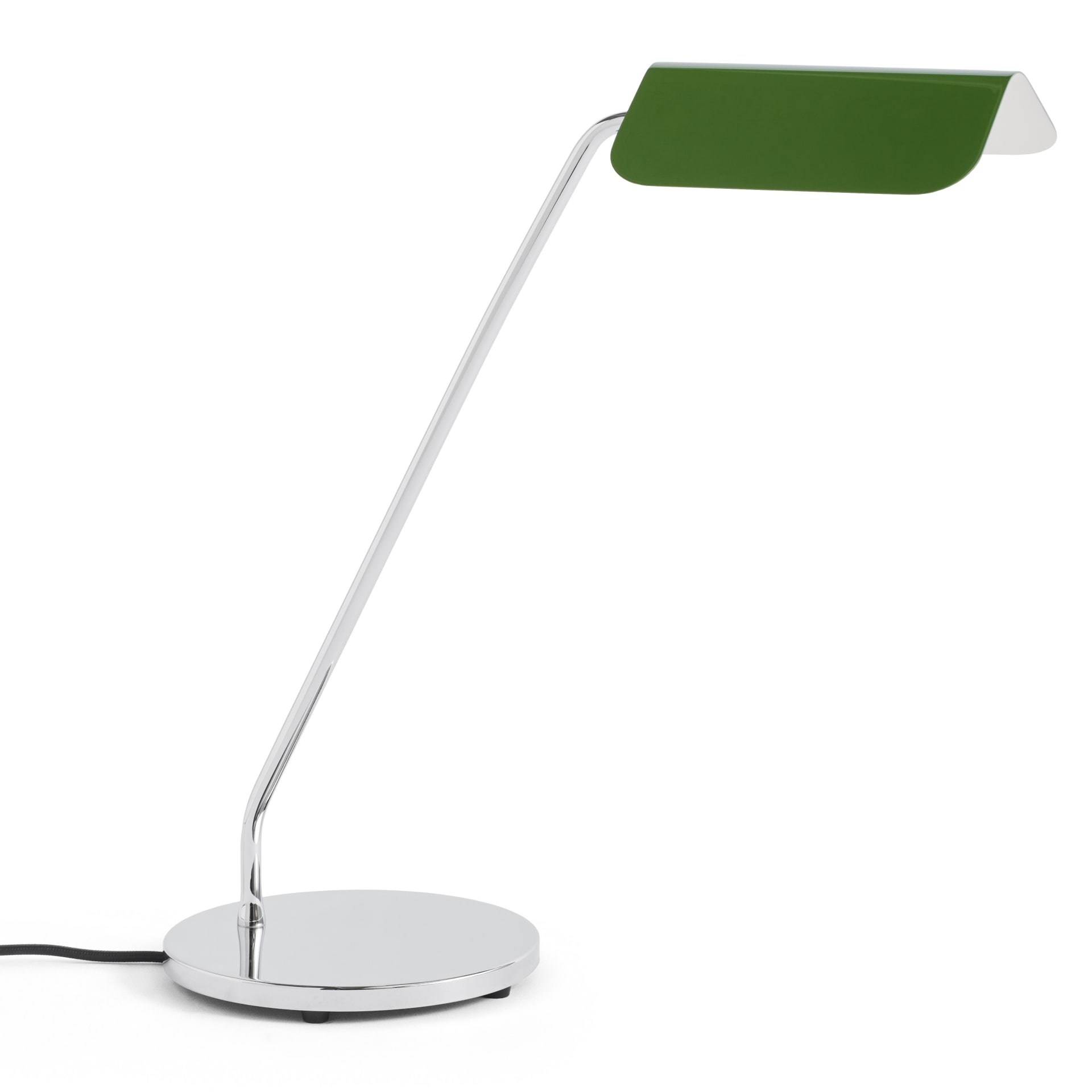 Skládaná ocelová stínidla vytvářejí špičatou siluetu střechy, která je inspirací pro název lampy a zároveň nabízí grafický kontrast s chromovanými podstavci. Kulatý podstavec a zkosené rameno doplňuje barevné stínidlo, které se může otáčet o 360 stupňů, což uživatelům umožňuje nasměrovat světlo podle potřeb. výška 38 cm / šířka 16 cm / hloubka 38 cm
