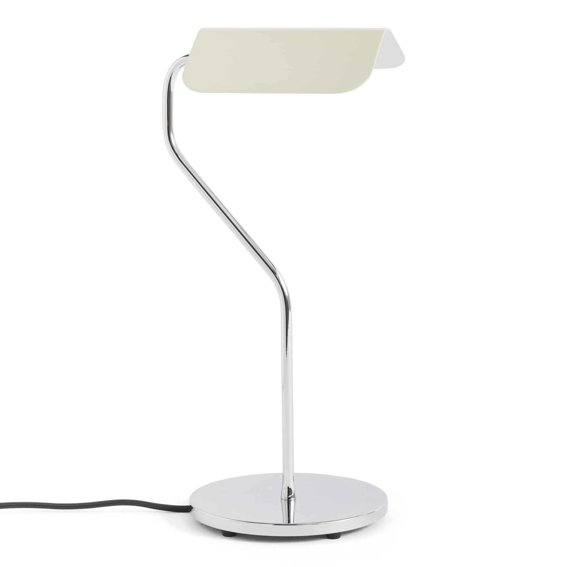 Charakteristické skládané ocelové stínidlo vytváří siluetu připomínající špičatou střechu – právě tato forma dala lampě její jméno – a současně vytváří výrazný kontrast s chromovanou základnou.