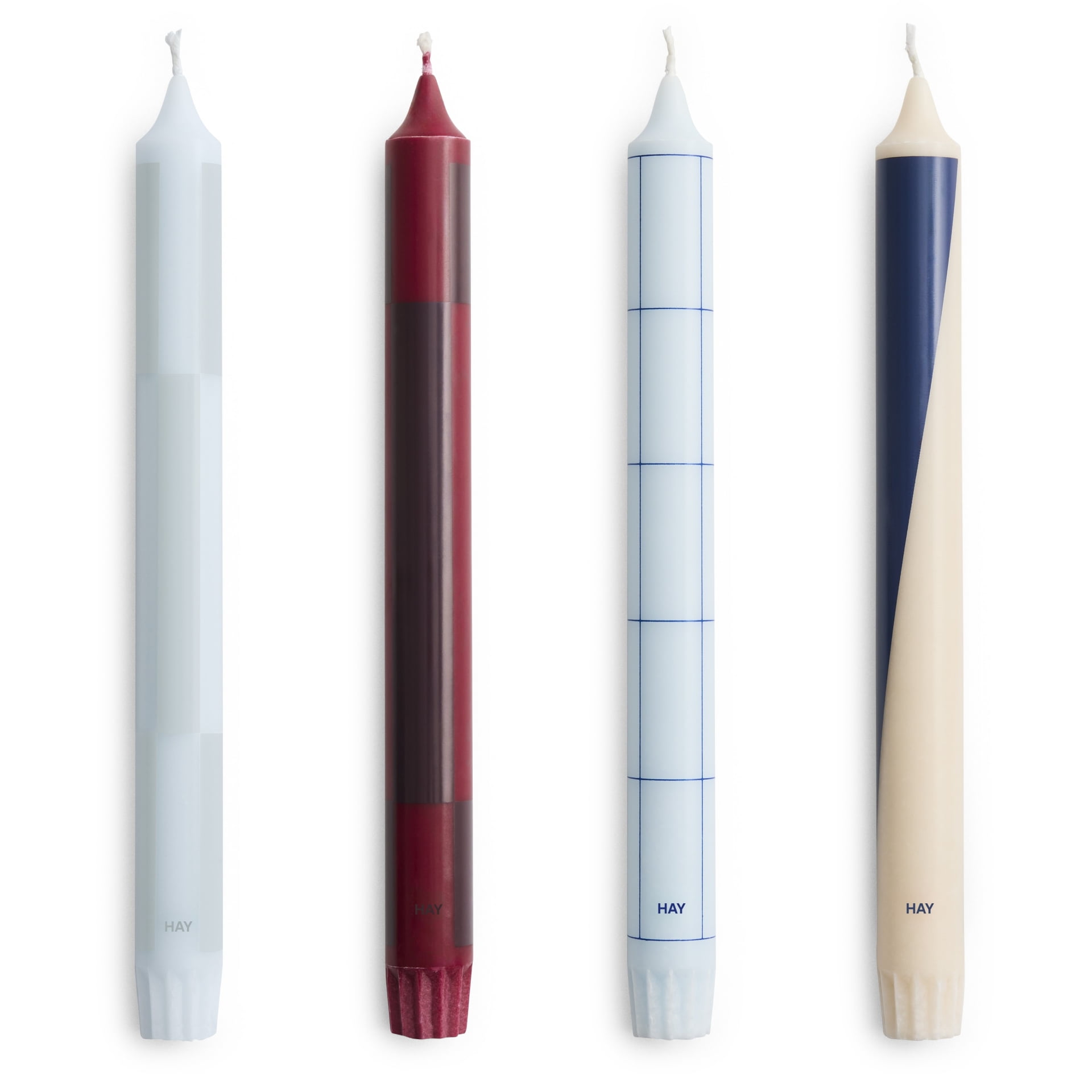 Svíčky mají certifikaci Nordic Swan Ecolabel. Doba hoření je zhruba 9 hodin. Každý kus vyniká jedinečnými vzory a hravými barevnými kombinacemi, díky čemuž je můžete použít jednotlivě nebo je seskupit dohromady pro více efektivní dekoraci. Tento set v kombinaci modrých a bordó odstínů je ideální volbou pro ty, kteří chtějí interiér oživit originálními detaily.