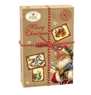 Dárkový balíček s minitabulkami mléčné čokolády a čokoládovými pralinkami v originálním vánončním designu Složení: cukr, rostlinný tuk (palmový olej), SUŠENÉ PLNOTUČNÉ MLÉKO, kakaové máslo, kakaová hmota, SUŠENÁ SLADKÁ SYROVÁTKA, kakaový prášek (vysoce odtučněný), MÁSELNÝ TUK, emulgátor: SÓJOVÉ LECITHINY, přírodní aroma Bourbon vanilka. Může obsahovat stopy ořechů. Vyrobeno v Německu