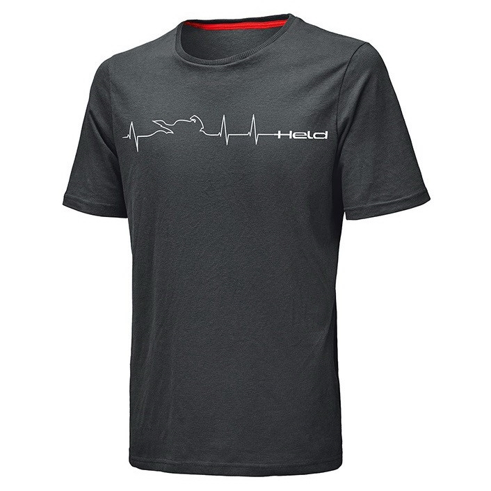 Pánské bavlněné triko Be Heroic s límečkem do V . Pohodlné triko ze 100% bavlny, vpředu s designem srdeční frekvence obsahující siluetu motocyklu, vzadu nahoře s nápisem BE HEROIC. krátký rukáv výstřih do V 100% bavlna černá barva potisk – design Heartbeat Tabulka velikostí Held Péče a materiály Held