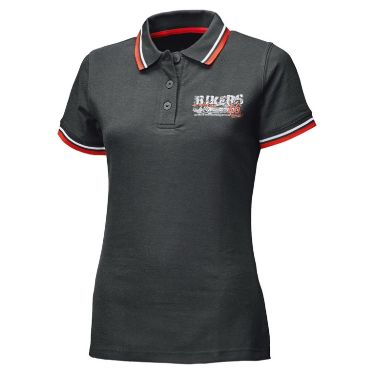 Dámské tričko s límečkem a zapínáním na knoflíčky: krátký rukáv límeček bavlna Barva : černá + barevný potisk DALŠÍ INFORMACE : Tabulka velikostí Held Péče a materiály Held