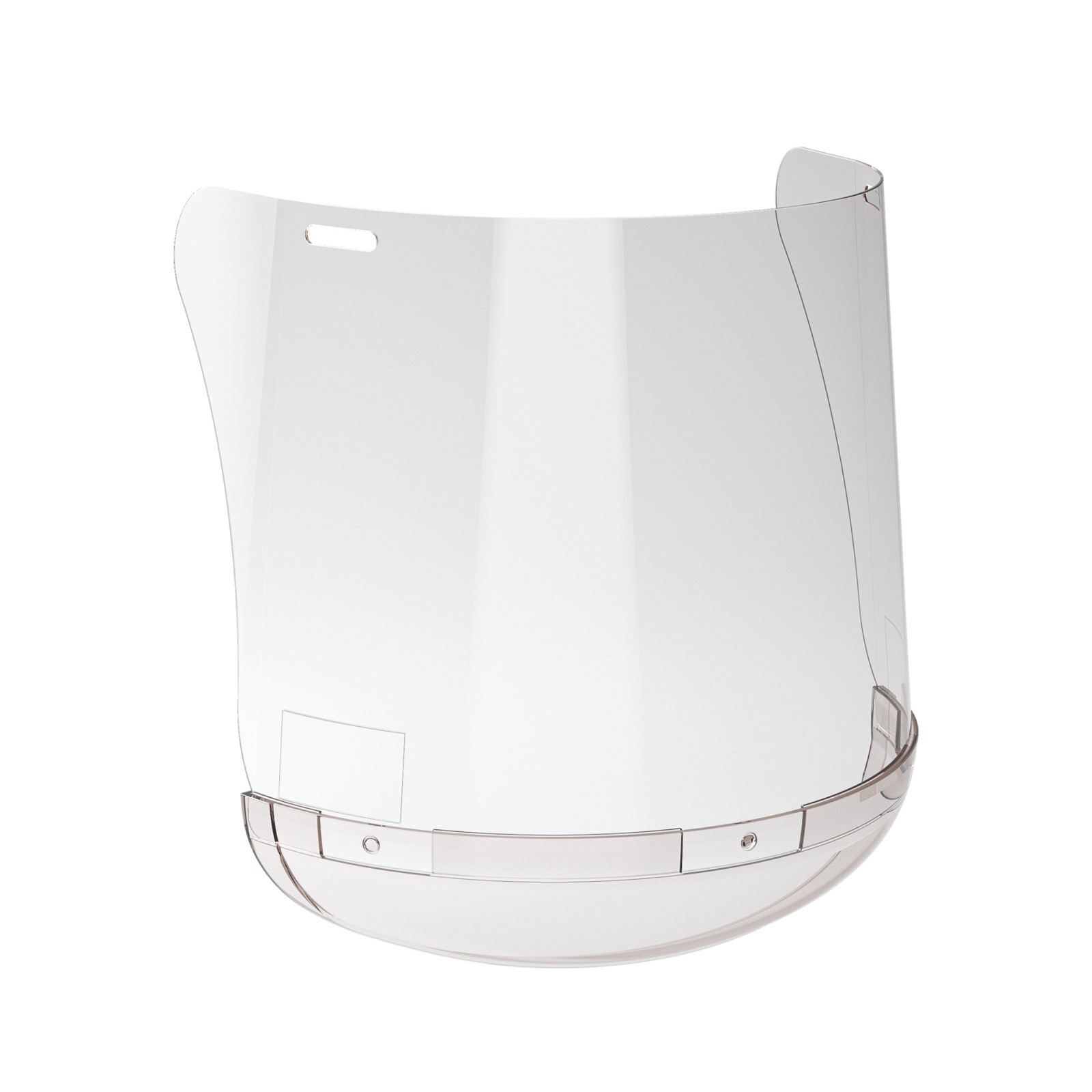 Uniformní design Všechny ochranné štíty Hellberg mají stejný tvar a design, aby se daly připevnit na kterýkoli z držáku štítu. To umožňuje snadnou a rychlou výměnu štítů podle druhu práce, aniž by bylo nutné mít další držák štítu. Rychlá a snadná montáž Systém pro ochranu obličeje jde přirozeně kombinovat se všemi modely ochranných sluchátek Hellberg a ochrannými přilbami. Štít se dá snadno sundat, což využijete při změnách pracovní aktivity v hlučném prostředí. Ochrana před nárazem Jednotlivé štíty jsou testovány na určitou sílu nárazu, proto si předem prostudujte technické údaje, abyste měli správnou a nutnou ochranu. Ochrana před cákanci Štíty jsou testovány, aby poskytly ochranu před cákanci a kapkami. Vysoká optická třída Čirý polykarbonát je výborně průhledný s hodnotou rozptylu světla rovnou téměř nule. Propustnost světla v tomto případě činí více než 90 %. Ochrana celého obličeje Štít chrání celý obličej, včetně brady, na kterou se odspodu nemohou dostat ani letící částečky, ani šplíchance vody či jiné tekutiny. Informace o shodě a normách EN 166:2001 2-1,2 HS 1B39 ROHS, REACH Technické parametry Hmotnost: 110 g Délka: 220 mm Tloušťka: 1 mm