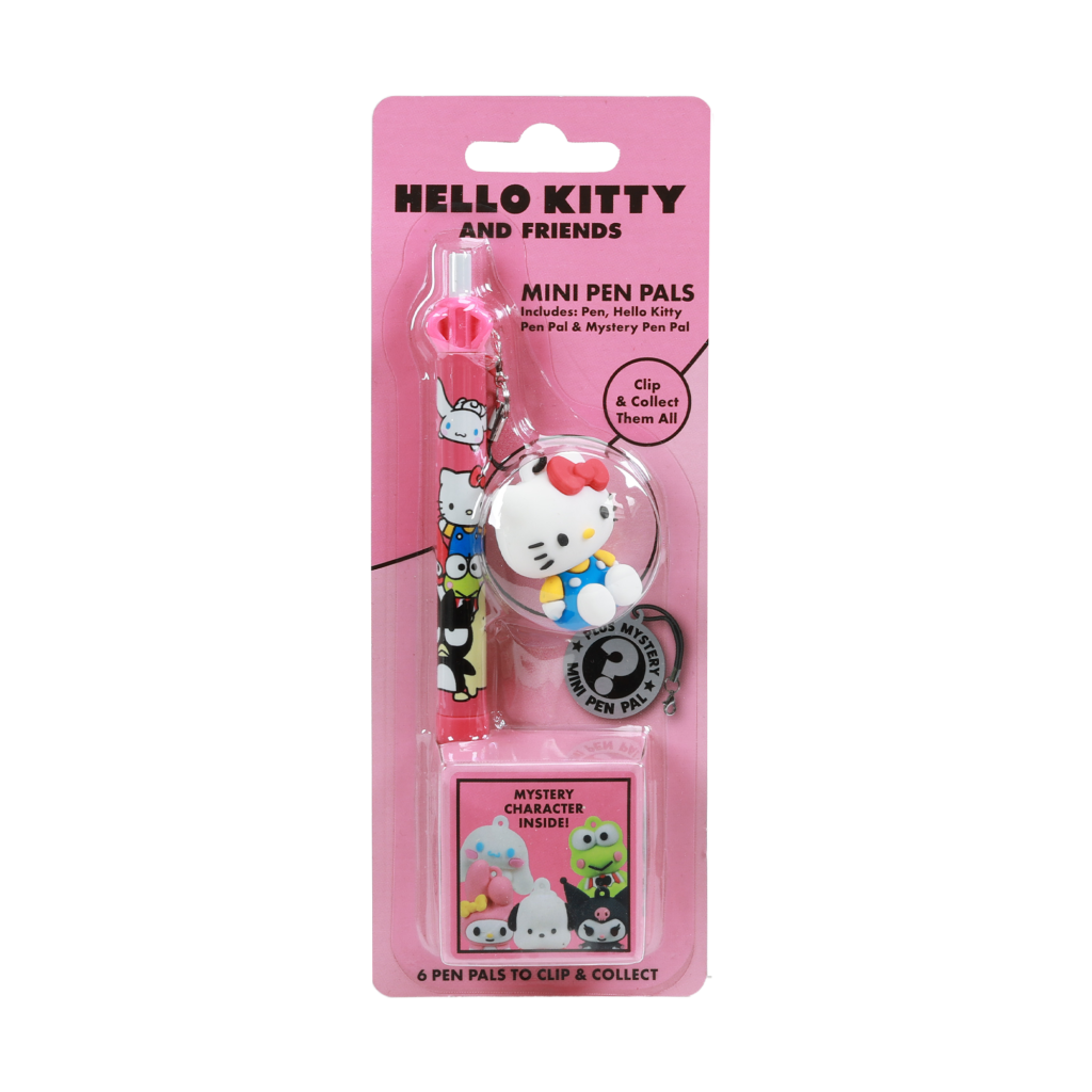 Hello Kitty pero mini Pals DPL6 je licencovaná psací potřeba, která představuje postavičku Hello Kitty, což je známý a oblíbený motiv zejména mezi dětmi. Pero má kompaktní velikost, která je vhodná pro menší ruce, což usnadňuje jeho používání při psaní i kreslení. Design pera je přizpůsoben tématu Hello Kitty, což se odráží v jemných barvách a charakteristickém motivu této postavičky. Tělo pera je vyrobeno z hladkého plastu s příjemným povrchem, který dobře padne do ruky. Dominantní barvou je bílá doplněná o detaily v růžové a červené, což odpovídá tradičnímu vzhledu Hello Kitty. Na čepičce pera je umístěna malá figurka Hello Kitty, která slouží i jako ozdobný prvek, a zároveň pomáhá udržet pero zakryté, čímž zabraňuje vysychání inkoustu. Tento prvek zároveň zvyšuje atraktivitu produktu, zejména pro sběratele a fanoušky této postavičky. Tento výrobek spadá do kategorie merch a licenčních dárků a je zařazen v rámci sortimentu ostatních hraček, což podtrhuje jeho funkci nejen jako psací potřeby, ale také jako sběratelského předmětu či dárku. Pero je vhodné pro děti, které mají rády kreativní činnosti a zároveň jsou fanoušky Hello Kitty. Díky svému designu a kvalitnímu zpracování je pero Hello Kitty mini Pals DPL6 praktickým a zároveň estetickým pomocníkem při psaní.