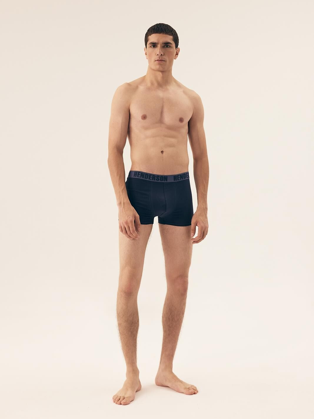 Pánské boxerky - vysoce kvalitní bavlna - široký elastický pas s logem společnosti - krátká nohavice - v balení po dvou kusech: tmavě modré hladké a tmavě modré vzorované Složení: 95 % bavlna, 5 % elastan