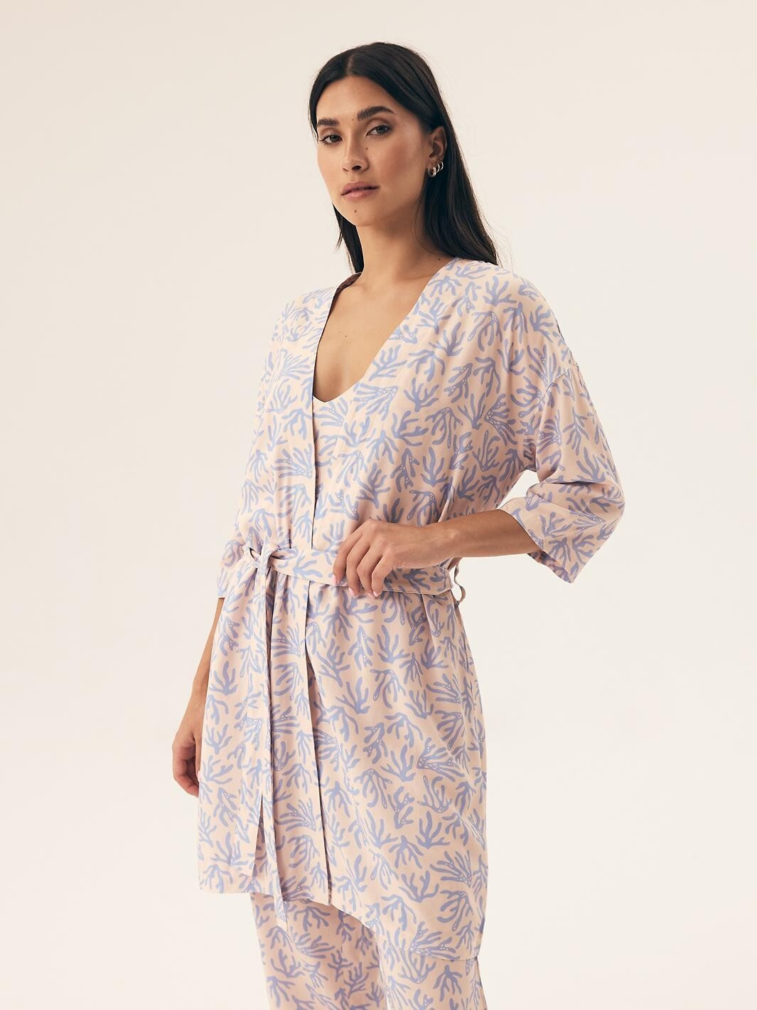 Dámský župan - vysoce kvalitní vzorovaná viskóza - délka rukávu 7/8 - zavazování v pase Složení: 100% viskóza
