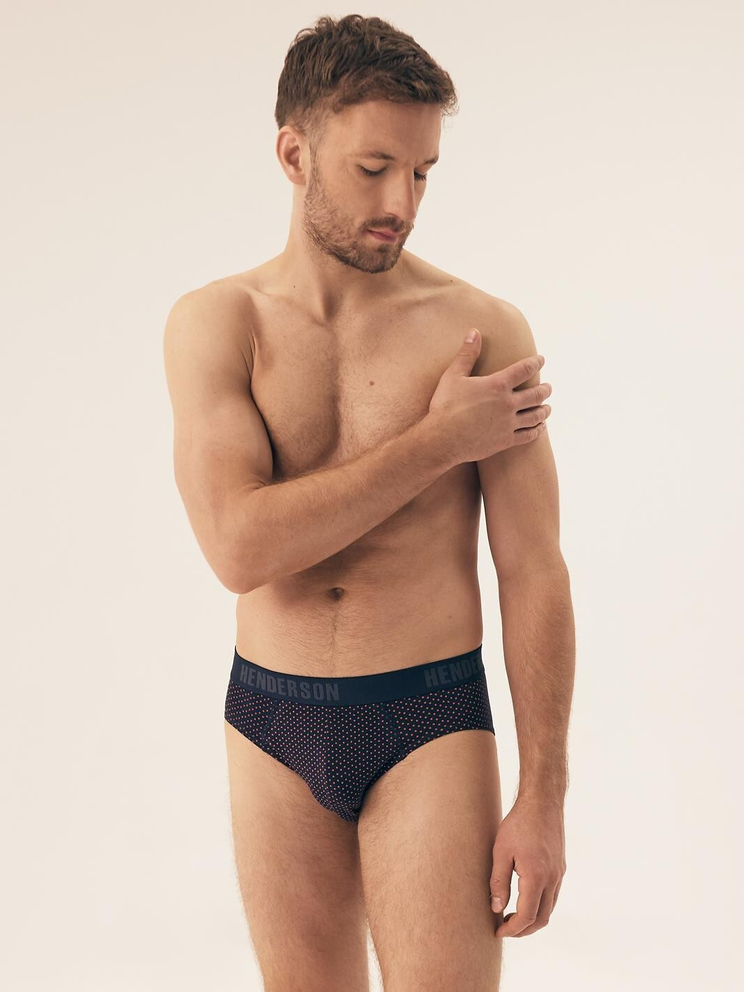 Pánské slipy - vysoce kvalitní bavlna - široký elastický pas s logem společnosti - baleno v polybagovém balení po 5 kusech - barvy: tmavě modrá a tmavě modrá s puntíky Složení: 95 % bavlna, 5 % elastan