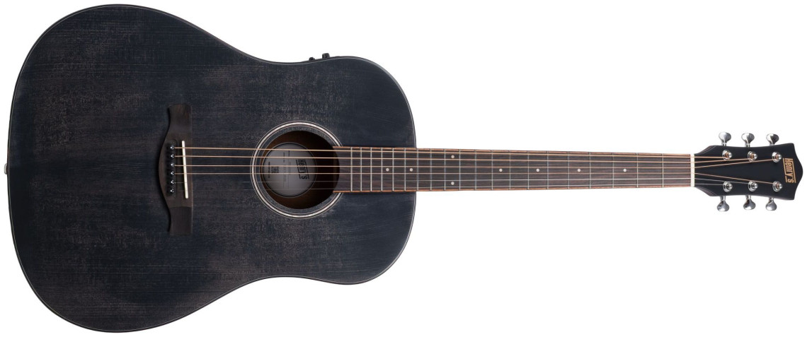 Elektroakustická kytara série Daily - top: smrk sitka (masiv), tvar: Round Shoulder, zadní deska + luby: mahagon, krk: mahagon, hmatník: vavřín, aktivní snímač Fishman Presys II s ladičkou, barva: Black
