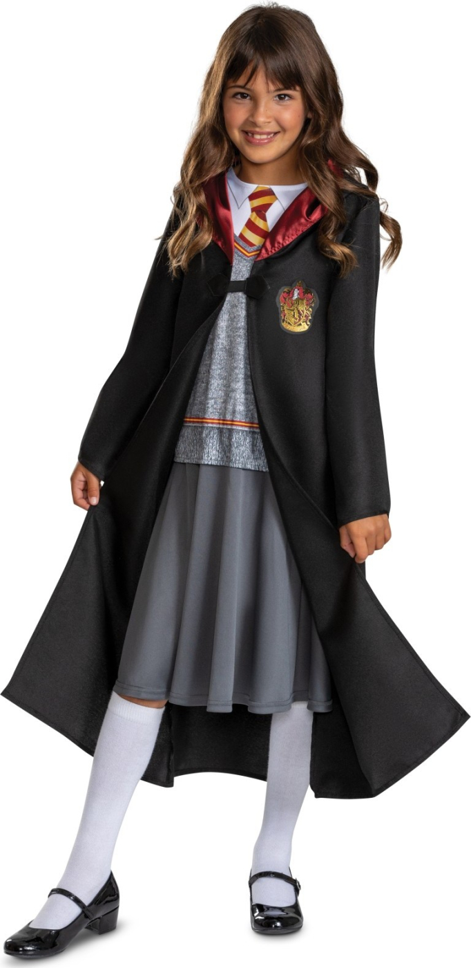 Kostým Hermiony Grangerové potěší všechny fanoušky světa Harryho Pottera, kteří se chtějí proměnit v jednu z nejchytřejších čarodějek své generace. Součástí je černý kouzelnický hábit s erbem Nebelvíru a všité šaty, které vytvářejí elegantní a věrný vzhled školní uniformy z Bradavic. Kostým je pohodlný na nošení a hodí se na karneval, Halloween, tematické oslavy i cosplay události. Skvělá volba pro každou mladou čarodějku připravenou na dobrodružství.
