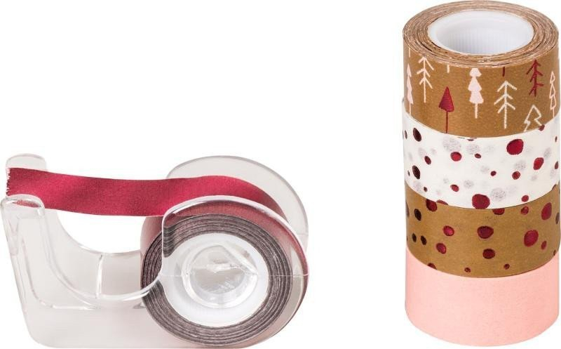 <p>Balení obsahuje 5 typů ozdobných samolepicích pásek s odvíjecím strojkem. Každá rolička má rozměr 3m x 12mm. Velmi snadno se sundají, lze opětovně použít. Vhodné na ozdobení dárků, přáníček, scrapbookových projektů i dekorací v domácnosti.</p>