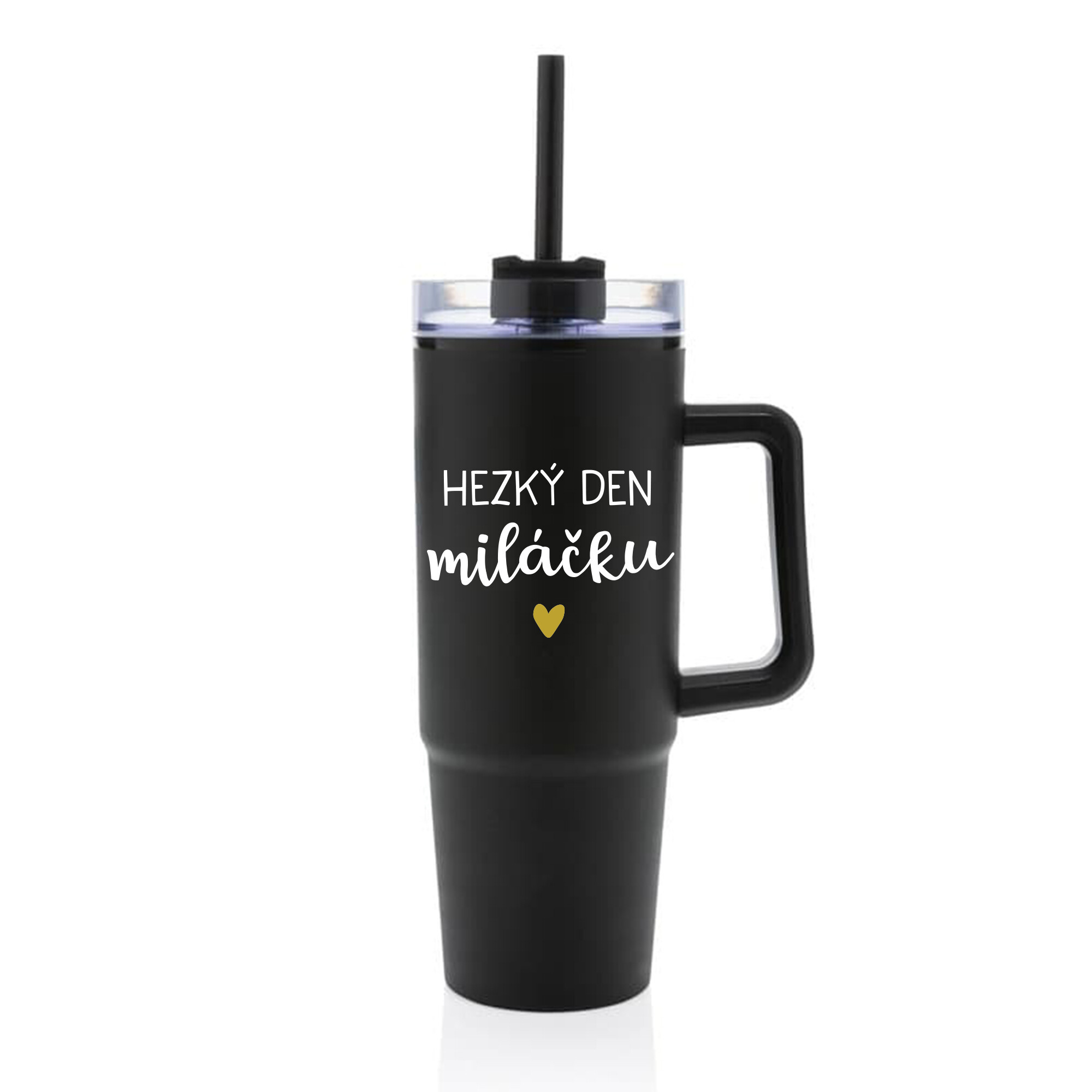 HEZKÝ DEN MILÁČKU - černý cestovní termohrnek s průhledným víčkem 900 ml