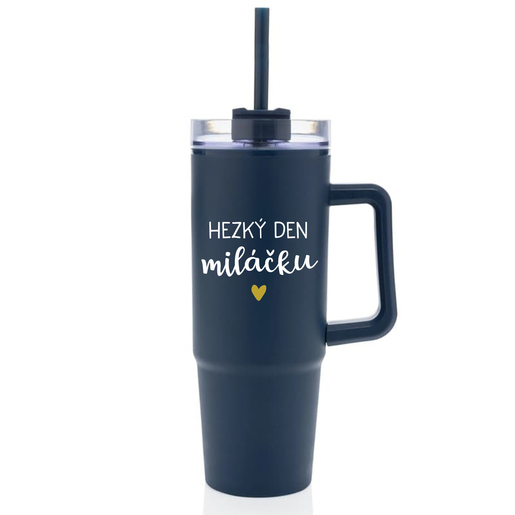 HEZKÝ DEN MILÁČKU - modrý cestovní termohrnek s průhledným víčkem 900 ml