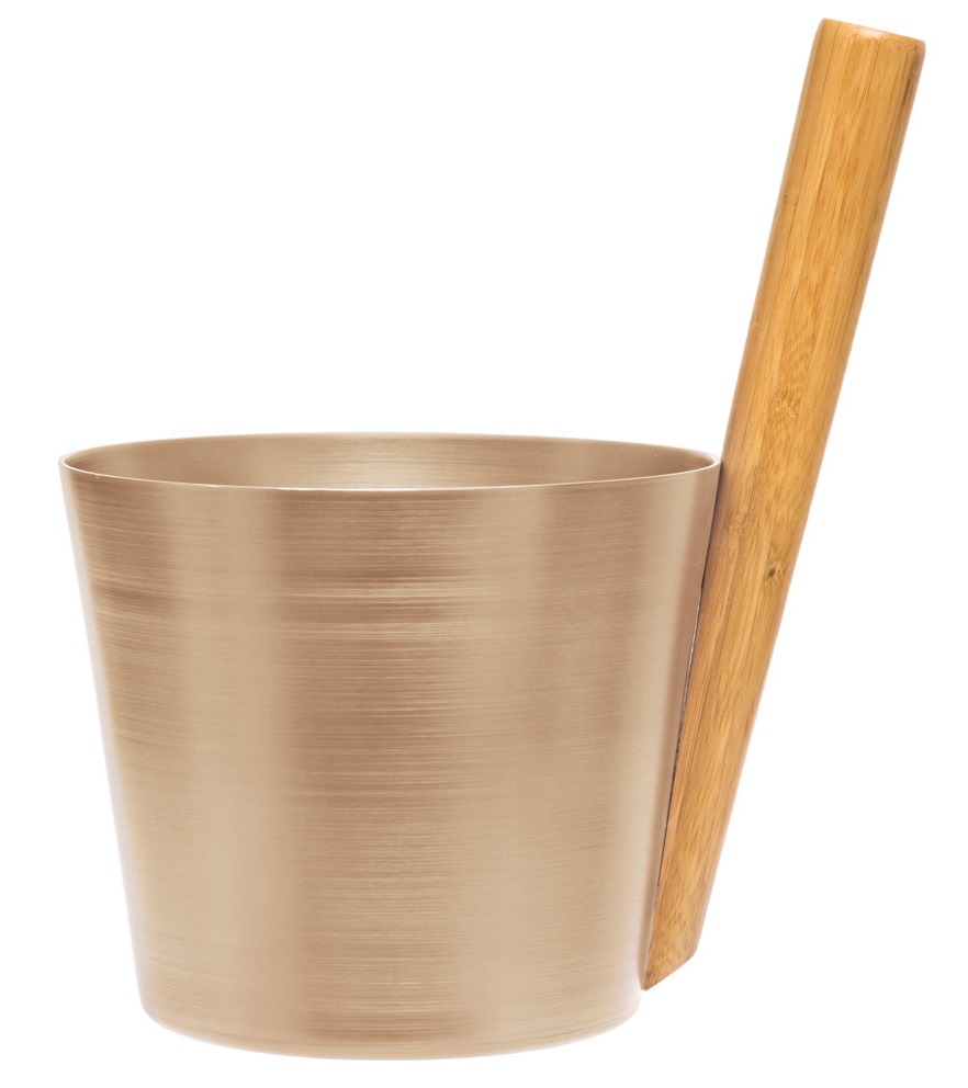 Hliníkové vědro v šampaňské barvě má rukojeť z tepelně upravovaného bambusu, díky čemuž se vědro příjemně drží a nehrozí tak popálení o rozehřátý kov. Objem vědra je 5 l.