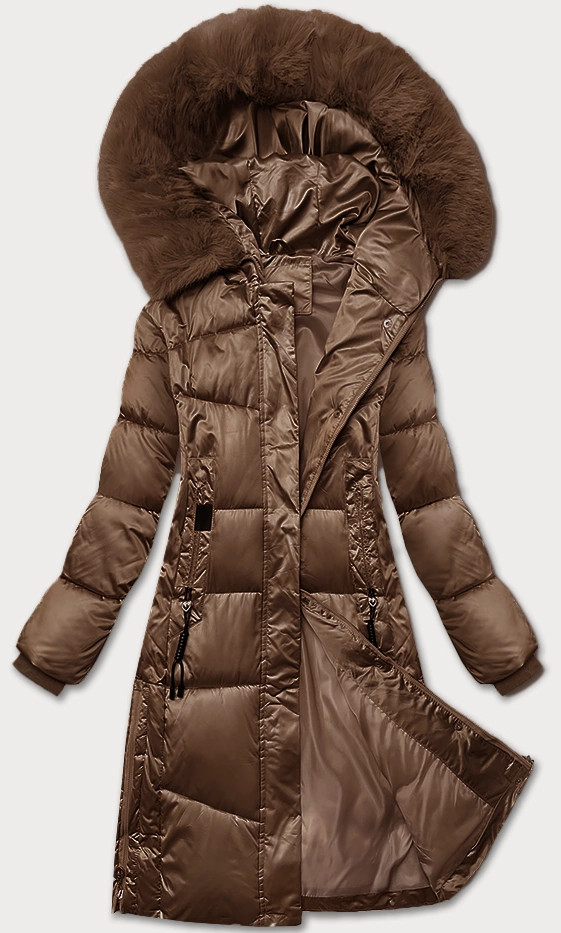 Věnujte prosím pozornost při výběru velikosti dle velikostní tabulky uvedené níže. Velikosti neodpovídají běžně nošené konfekci. Bunda s kapucí Bunda má vypasovaný střih, je lehce zateplená syntetickou péřovou výplní, má dvě kapsy se zapínáním na patentky a zapíná se černým zipem. Model má kapuci olemovanou kožešinou. Zatímco kapuci není možné odepnout, kožešinu odepnout lze. Bunda má délku do poloviny stehen. Složení: 100 % polyester. Bunda má menší velikost, než jaká je uvedená na štítku. Při výběru se prosím řiďte rozměry uvedenými v tabulce velikostí.