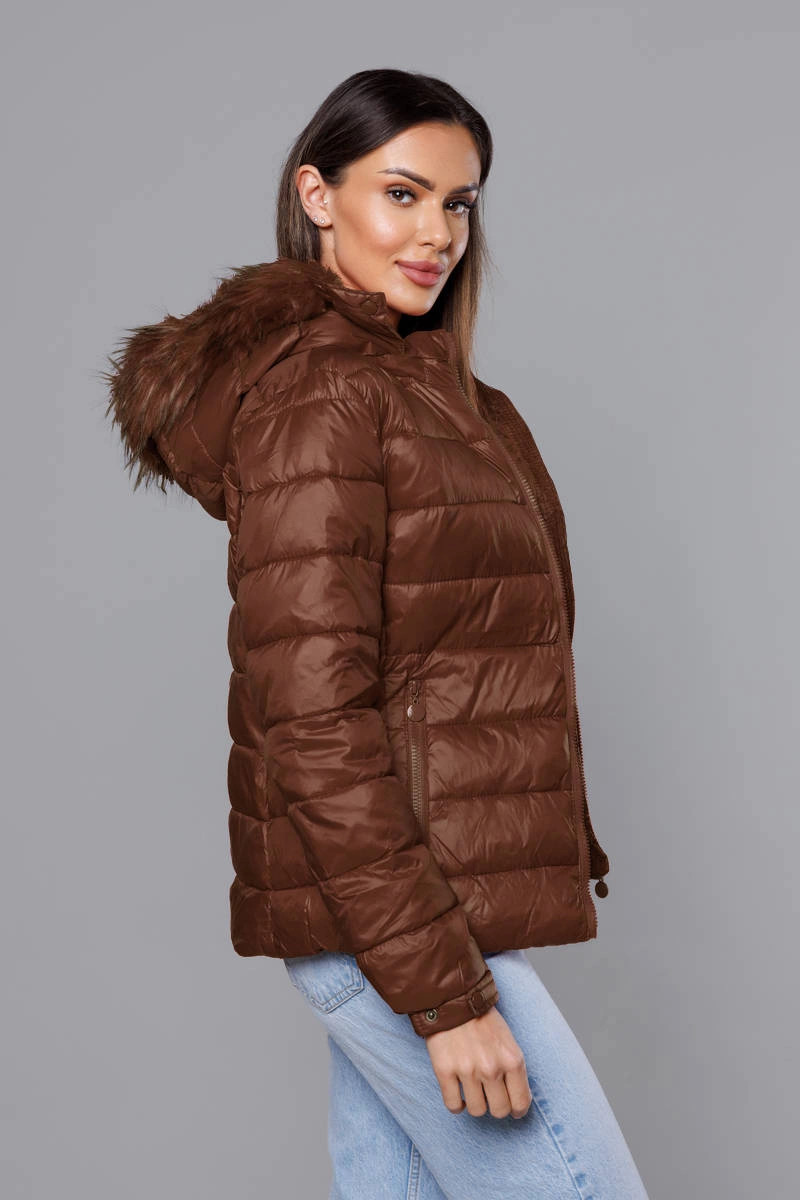 Hnědá krátká dámská zimní bunda (YP-20129-106) odstíny hnědé XL (42)