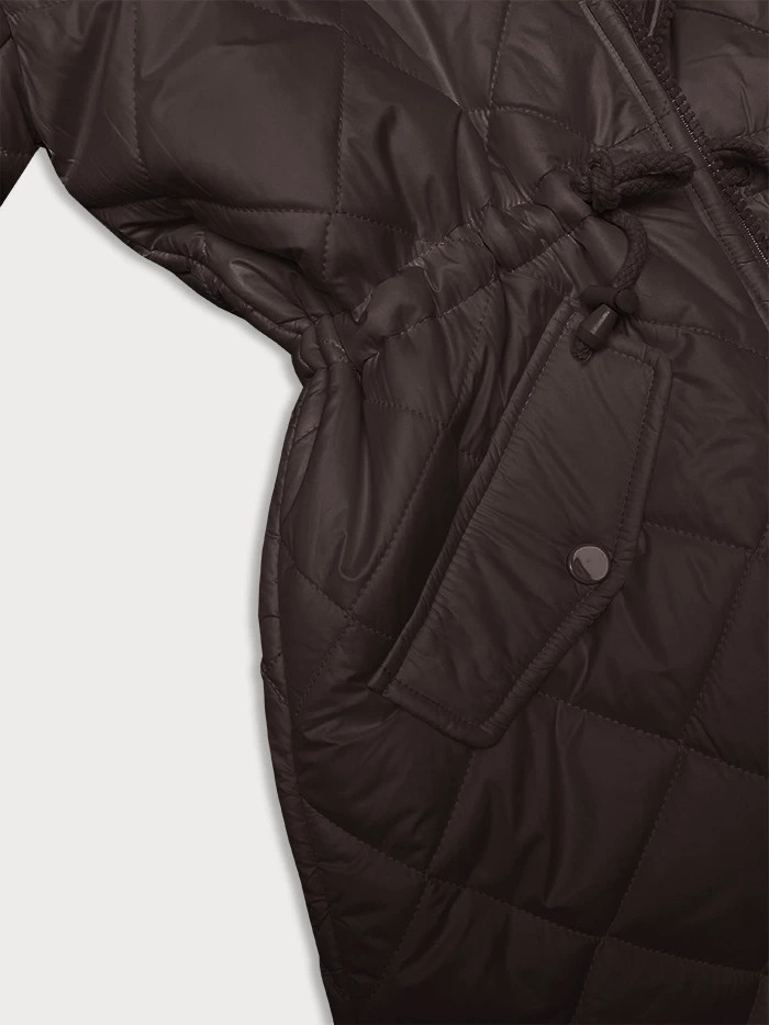 Hnědá oboustranná dámská prošívaná bunda - kožíšek (H-897-23) odstíny hnědé L (40)