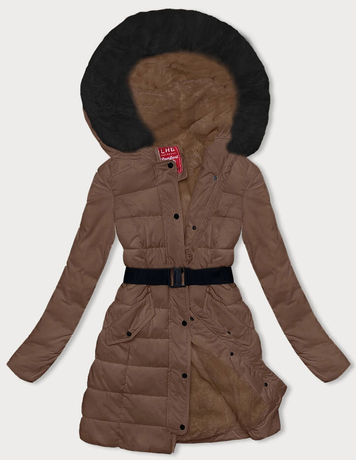 Hnědá péřová dámská zimní bunda (2M-007) odstíny hnědé L (40)